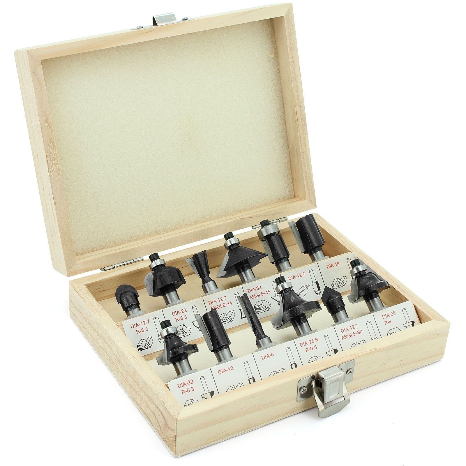 Hochwertiger 12 teiliger Fräskopfsatz zum Fräsen von Hart- und Weichhölzern, Spanplatten und Kunststoffen. Die Fräser haben einen Ø 8 mm Schaft und sind in einer praktischen Holzbox verstaut. Die perfekte Erweiterung zu Ihrer Oberfräse, Werkstatt oder den Beruf.