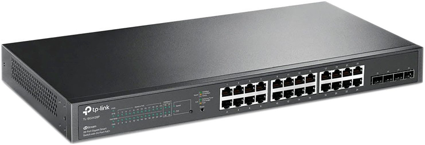 Lieferumfang | TP-Link TL-SG2428P 24-Port Gigabit PoE+ L2 Smart Switch 4xSFP, Netzkabel, Rackmount Kit, Gummifüße, Installationsanleitung |