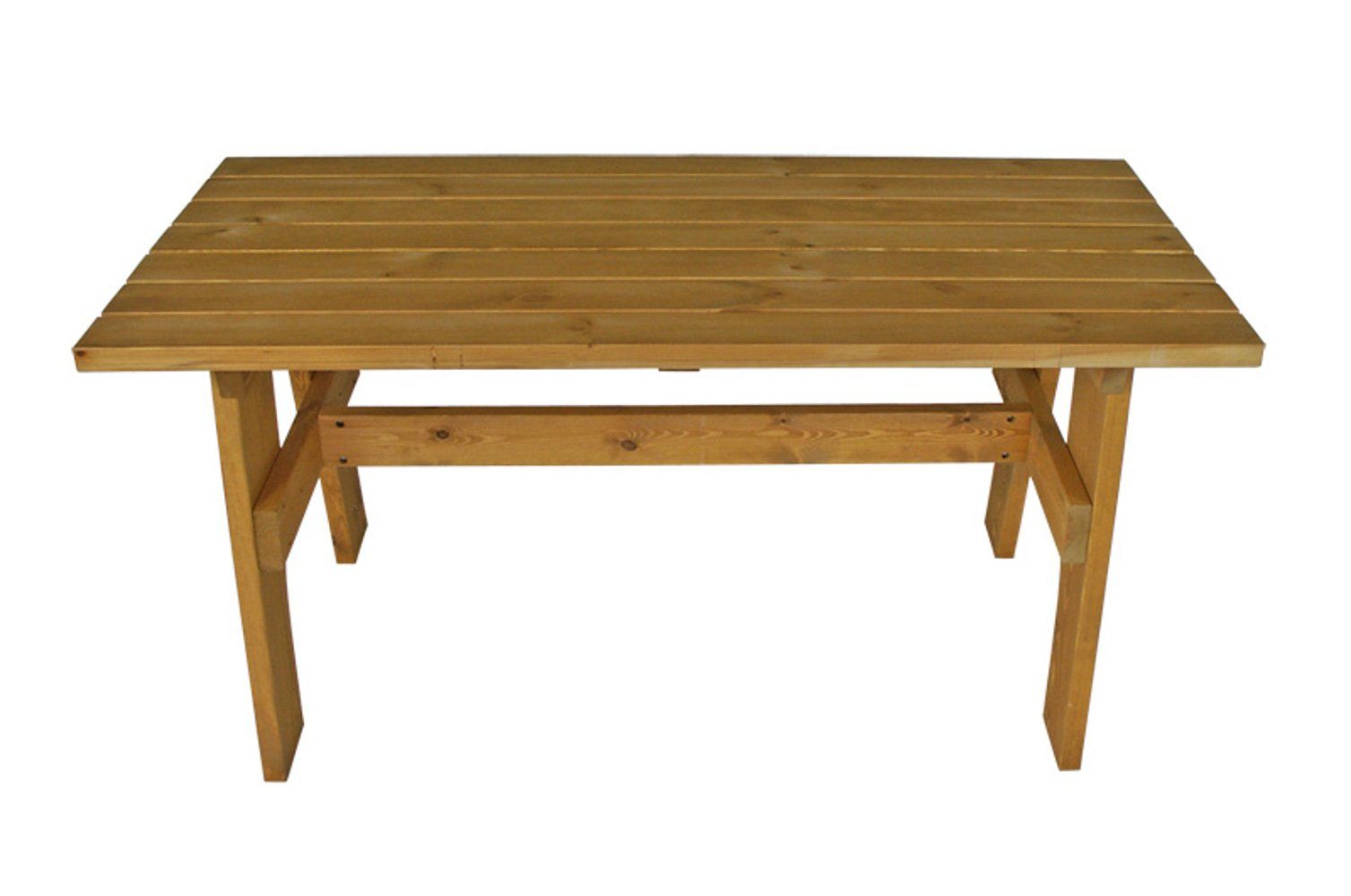 Der Gartentisch ist besonders solide und robust konstruiert und gebaut, verwendet wird für alle Teile 30mm starkes massives Kiefernholz.