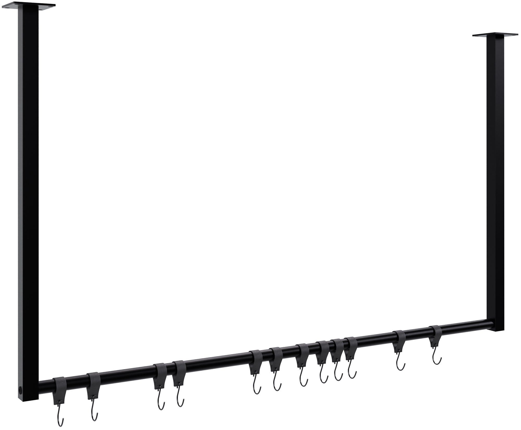 Die Deckenmontage eröffnet vielfältige Kombinationsmöglichkeiten, etwa über einer Kommode, einem Sideboard oder einem Schuhregal. Neben der Kleiderstange sorgen zwölf praktische Kleiderhaken mit eleganten Lederschlaufen für zusätzlichen Stauraum. Jacken, Taschen oder Accessoires lassen sich so übersichtlich und griffbereit aufbewahren. Die robuste Konstruktion aus pulverbeschichtetem Stahl trägt bis zu 50 kg, die Haken sind jeweils mit 5 kg belastbar. Die Montage ist unkompliziert – sämtliches Montagematerial und eine verständliche Anleitung sind im Lieferumfang enthalten.