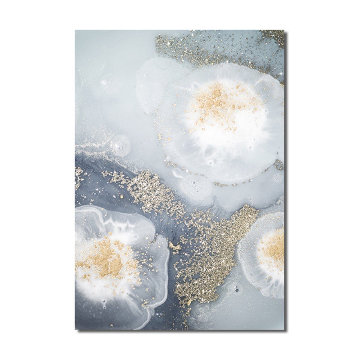 Leinwand Bilder ohne Rahmen von TPFLiving - Poster Leinwand - Abstrakte Formen - Weiß, Blau, Gelb, Gold, Grau - 15 verschiedene Größen - 3-er Set