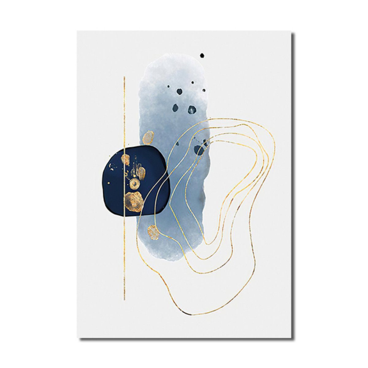 Leinwand Bilder ohne Rahmen von TPFLiving - Poster Leinwand - Abstrakte Formen - Weiß, Blau, Gelb, Gold, Grau - 15 verschiedene Größen - 3-er Set