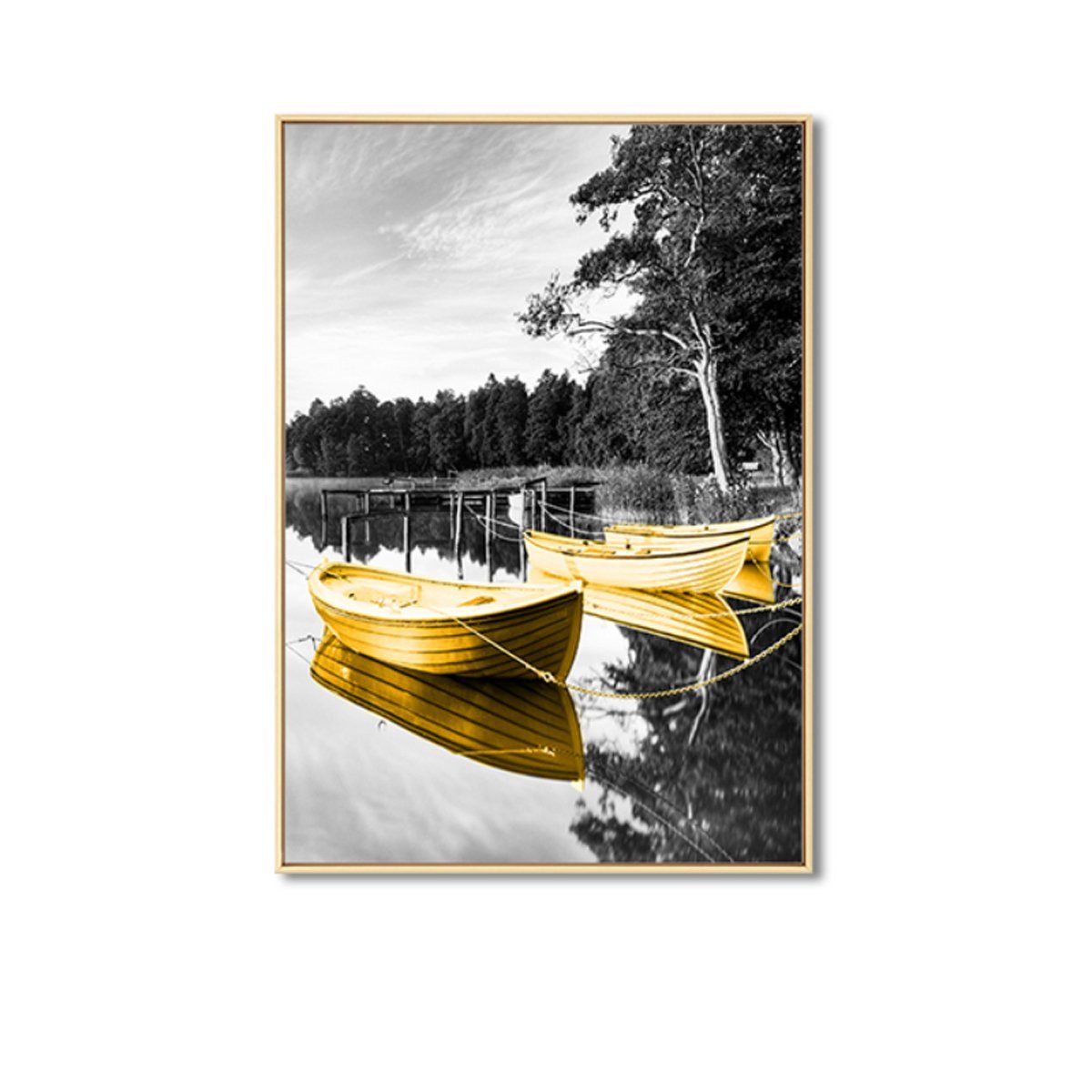 TPFLiving Kunstdruck (OHNE RAHMEN) Poster - Leinwand - Wandbild, Gelbe Boote auf grauem Hintergrund - Wanddeko Wohnzimmer - (7 verschiedene Größen zur Auswahl - Auch im günstigen 3-er Set), Farben: Gelb, Grau - Größe: 13x18cm