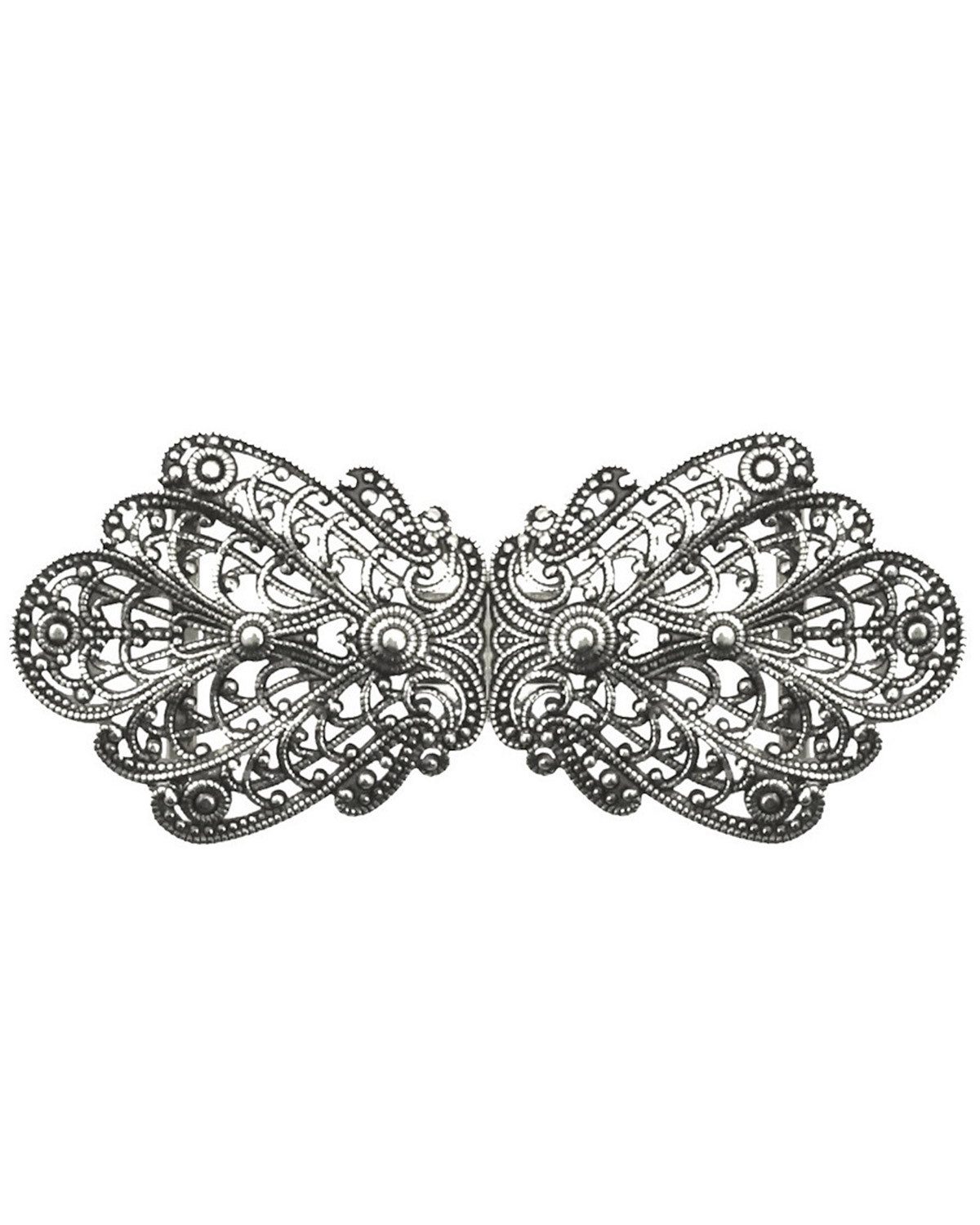 Die Dirndlschürzenschließe erfreut sich in letzter Zeit mehr und mehr an Beliebtheit. Die Dirndlschürzen Klammer ist aber auch ein tolles Zubehör, dass durch seine schlichte Eleganz besticht und das ganze Dirndl zu einem ganz besonderem Hingucker zu Oktoberfest, Kirchweih und Volksfest macht. Die metallene Trachtenschließe erinnert im geschlossenen Zustand an einen Schmetterling. Auf der Rückseite befindet sich jeweils ein metallener Steg an dem das Schürzenband mit ein paar Stichen befestigt wird. Das Schürzenband darf gerne etwas breiter als die Stegschlaufe sein, da sich dadurch eine sehr dekorative Raffung ergibt. Geschlossen wird die Trachtenschnalle mittels eines Hakens, der einfach in die Verschlussschlaufe eingehakt wird. So wird die übliche Bindetechnik der Dirndlschürze ersetzt und Ihr Beziehungsstatus, den Sie normalerweise über die Position Ihrer Schürzenschleife ausdrücken, bleibt erstmal Ihr Geheimnis. Zur Anpassung des Schürzenbandes legen Sie bitte die Schürze wie gewohnt über das Dirndl. Kreuzen Sie die Enden im Rücken und führen Sie diese wieder nach vorne. Fädeln Sie nun die Enden des Bandes durch je eine Schlaufe der Trachtenschnalle und schließen Sie die Klammer vorne. Ziehen Sie nun die Enden des Schürzenbandes so weit durch die Trachtenschließe bis die Schürzenbänder eng an der Taille anliegen und die Schürze perfekt sitzt. Im Anschluss können Sie das überschüssige Band kürzen und die Enden fixieren. Wir empfehlen als Nahtzugabe pro Seite ca. 5 bis 8 cm, falls die Schürze einmal weiter gemacht werden muss. Dank der Maßanfertigung ist die Einarbeitung eines Gummizugs nicht notwendig.