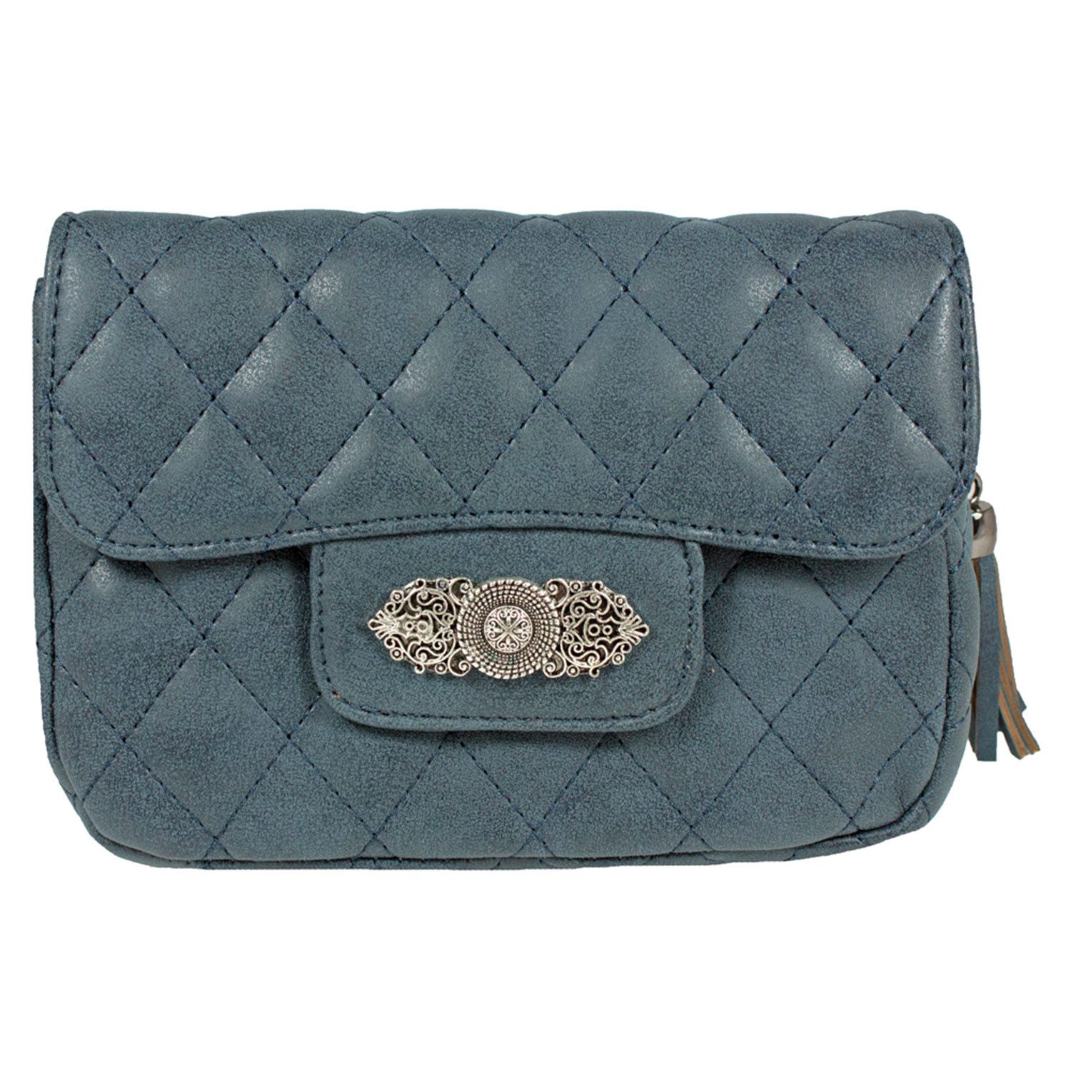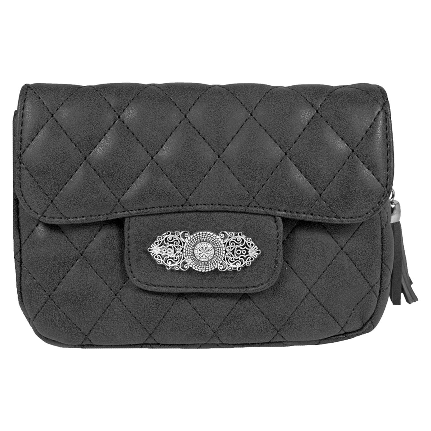 Suchst du eine stilvolle Begleiterin für dein Dirndl oder ein charmantes Accessoire für den Alltag? Dann ist die gesteppte Handtasche „Alessia“ genau das Richtige für dich! Diese kompakte Trachtentasche überzeugt mit ihrem klassischen Design und liebevollen Details – und passt genauso gut zur Lederhose wie zum lässigen Kleid oder Jeans-Outfit. Gefertigt aus hochwertigem Lederimitat in weicher Wildlederoptik, fühlt sich die Tasche angenehm an und sieht besonders edel aus. Der farblich abgestimmte, verstellbare Trageriemen macht die Tasche flexibel tragbar – ob als Umhängetasche oder Schultertasche. Im Inneren findest du ein geräumiges Hauptfach sowie ein kleines Reißverschlussfach, ideal für Handy, Geld und Schlüssel. Ein besonderes Highlight ist die dekorative Blumen-Applikation aus Metall, die der Tasche einen alpinen Charme verleiht. Die verspielte Fransen-Troddel am Zipper rundet das Design gekonnt ab – ein echtes Lieblingsstück für Wiesn, Wasen oder einen stilvollen Auftritt im Alltag. Ob du ich für das Oktoberfest zurechtmachst oder einfach ein feminines Accessoire suchst: Mit „Alessia“ hast du Stil, Funktionalität und einen Hauch Trachtenliebe immer dabei. Lieferumfang: 1 Tasche mit Trageriemen Material: 100 % Polyurethan (Lederimitat) Farbe: Je nach Варианты Maße: ca. 21 x 17 x 6 cm