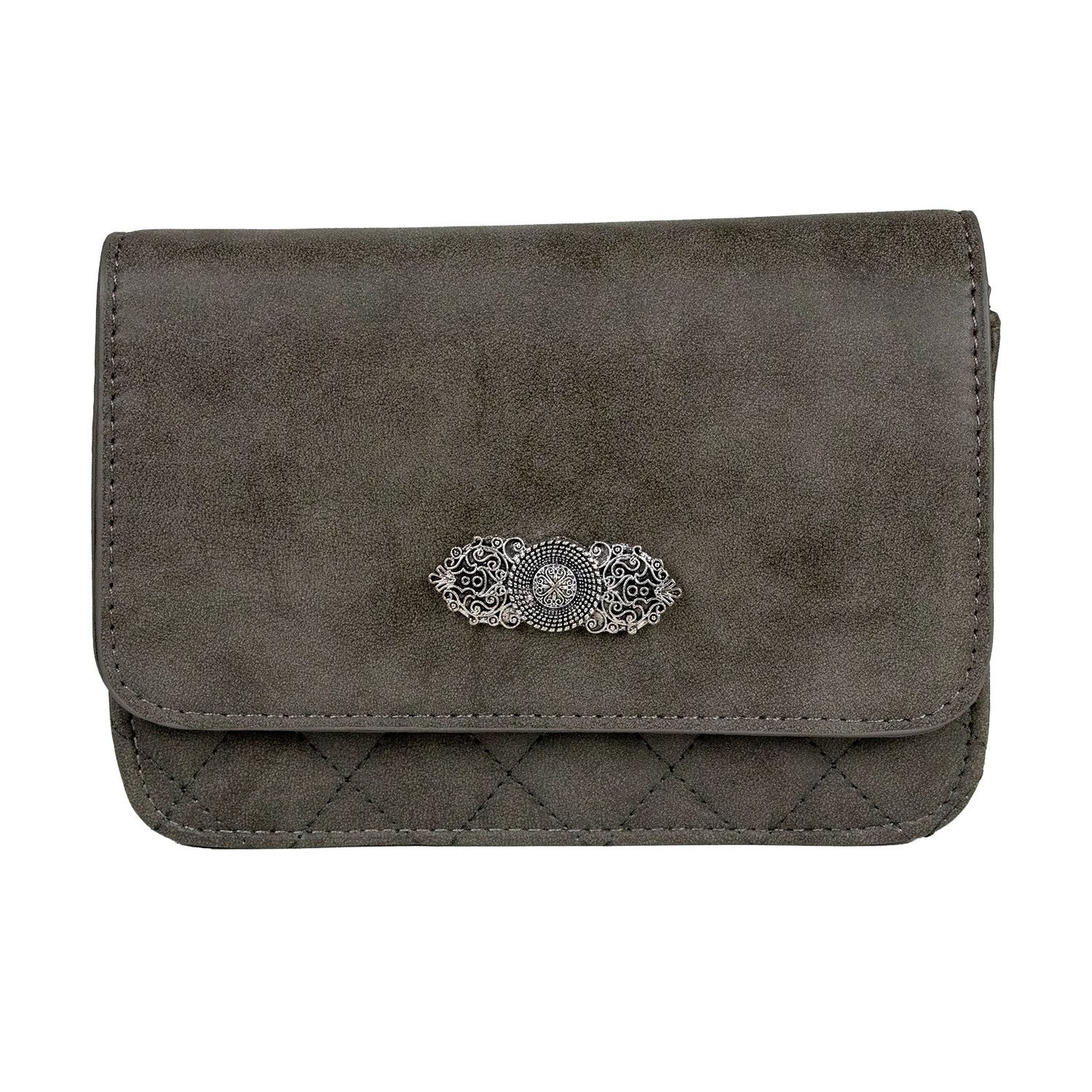 Die gesteppte Handtasche „Fabia“ von Trachtenland vereint traditionelles Trachtenflair mit modernem Design und funktionalem Aufbau. Sie ist die perfekte Ergänzung zu deinem Dirndl, Trachtenrock oder sogar zu deinem Alltagsoutfit. Die Tasche ist aus einem hochwertigen Lederimitat mit Veloursleder-Optik gefertigt, das dem beliebten Alcantara-Stil sehr nahekommt. Durch die eleganten Steppnähte auf Vorder- und Rückseite wirkt die Tasche edel und detailverliebt – ein echter Blickfang. Ein besonderes Highlight ist die silberfarbene Metall-Applikation, die einen stilvollen Kontrast zum soften Material bildet. Innen überzeugt „Fabia“ mit einem geräumigen Hauptfach sowie einem kleinen Reißverschlussfach für Schlüssel, Kleingeld oder Lippenstift. Verschlossen wird die Tasche sicher und bequem mit einem Magnetverschluss. Der Trageriemen mit Karabinerhaken lässt sich in der Длина individuell anpassen – für bequemes Tragen über der Schulter oder quer über dem Körper. Mit ihren kompakten Maßen von ca. 20 x 14 x 4 cm bietet die Tasche genug Platz für alles Wichtige – sogar größere Handys finden problemlos Platz. Erhältlich ist die Trachtentasche in klassischen Farben sowie in edlem Schwarz – perfekt kombinierbar mit fast jedem Trachtenlook oder einem modernen Outfit mit Bluse und Jeans.