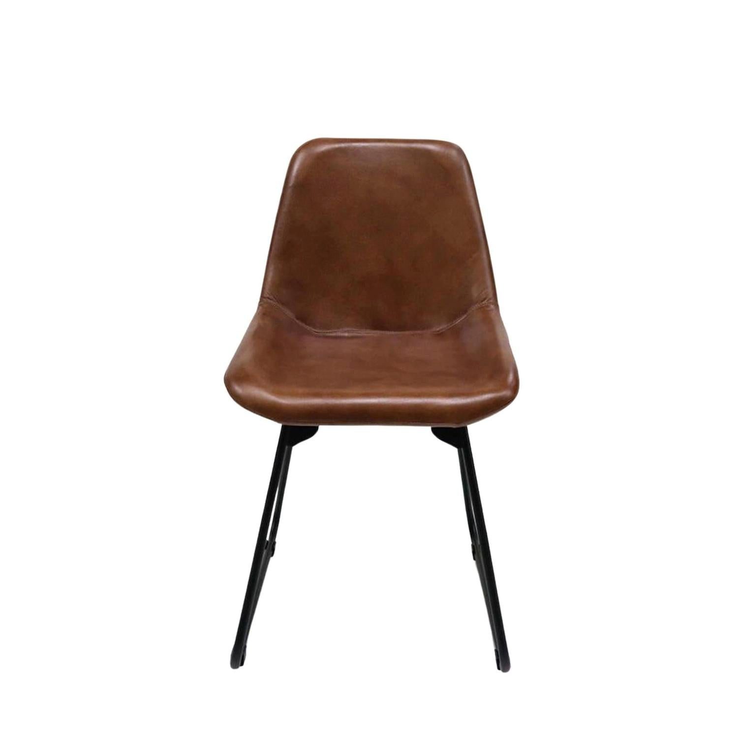 Herrlicher brauner Lederstuhl mit schwarz lackiertem Eisengestell. Der Stuhl ist sorgfältig mit hochwertigem Büffelleder gepolstert, und die warme braune Nuance schafft eine einladende Atmosphäre. Das zeitlose Design des Esszimmerstuhls sorgt dafür, dass er sich sowohl in moderne als auch in traditionelle Einrichtungen perfekt integriert. B: 47cm, H: 84cm, T: 60cm Sitzhöhe: 47cm
