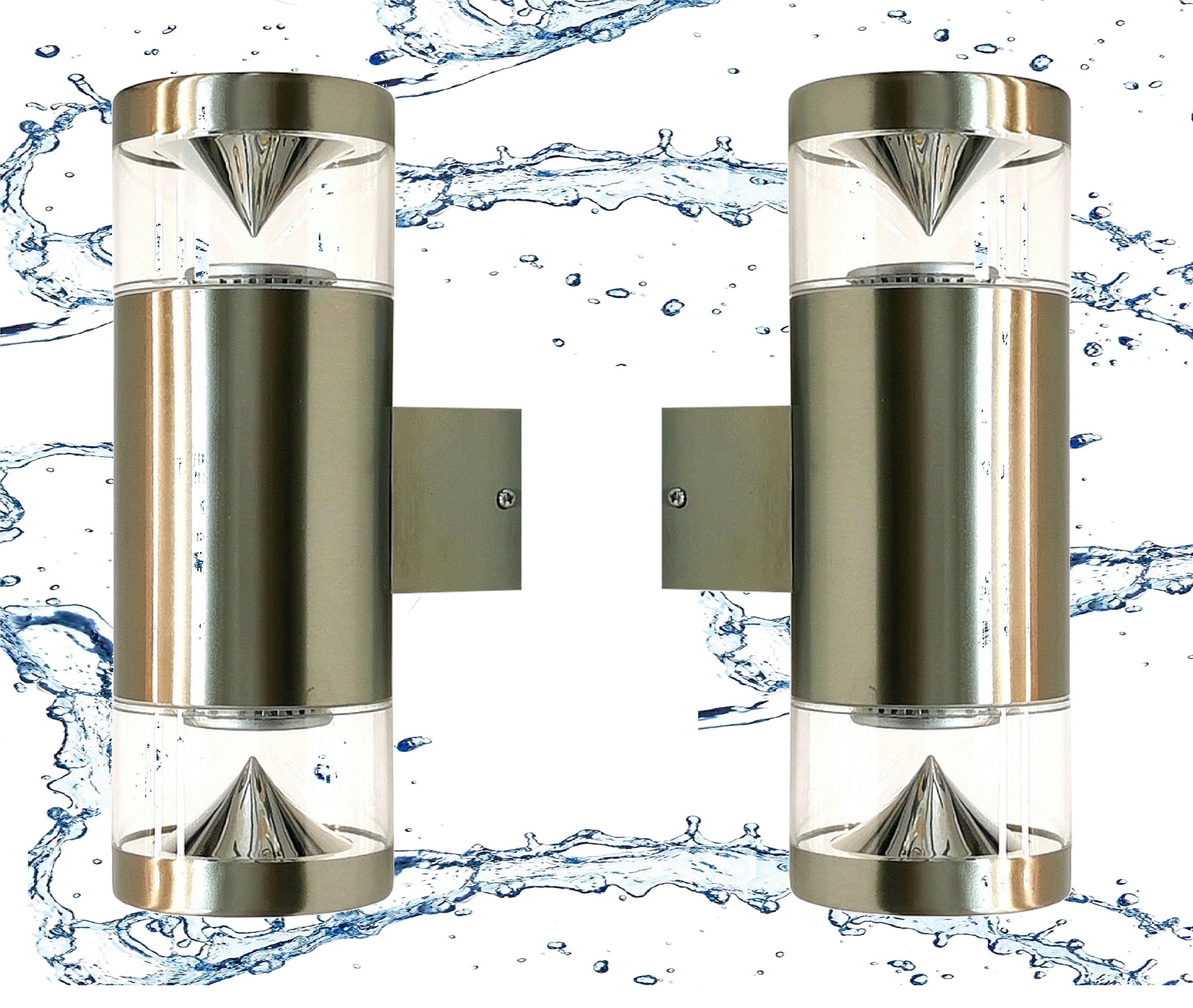 Leuchtmittel | 2er Pack 3035T IP44 Up & Down Wandstrahler in Silber Rund inkl. weiß leuchtend LED Leuchtmittel *FLEX* mit einstellbar Abstrahlwinkel |