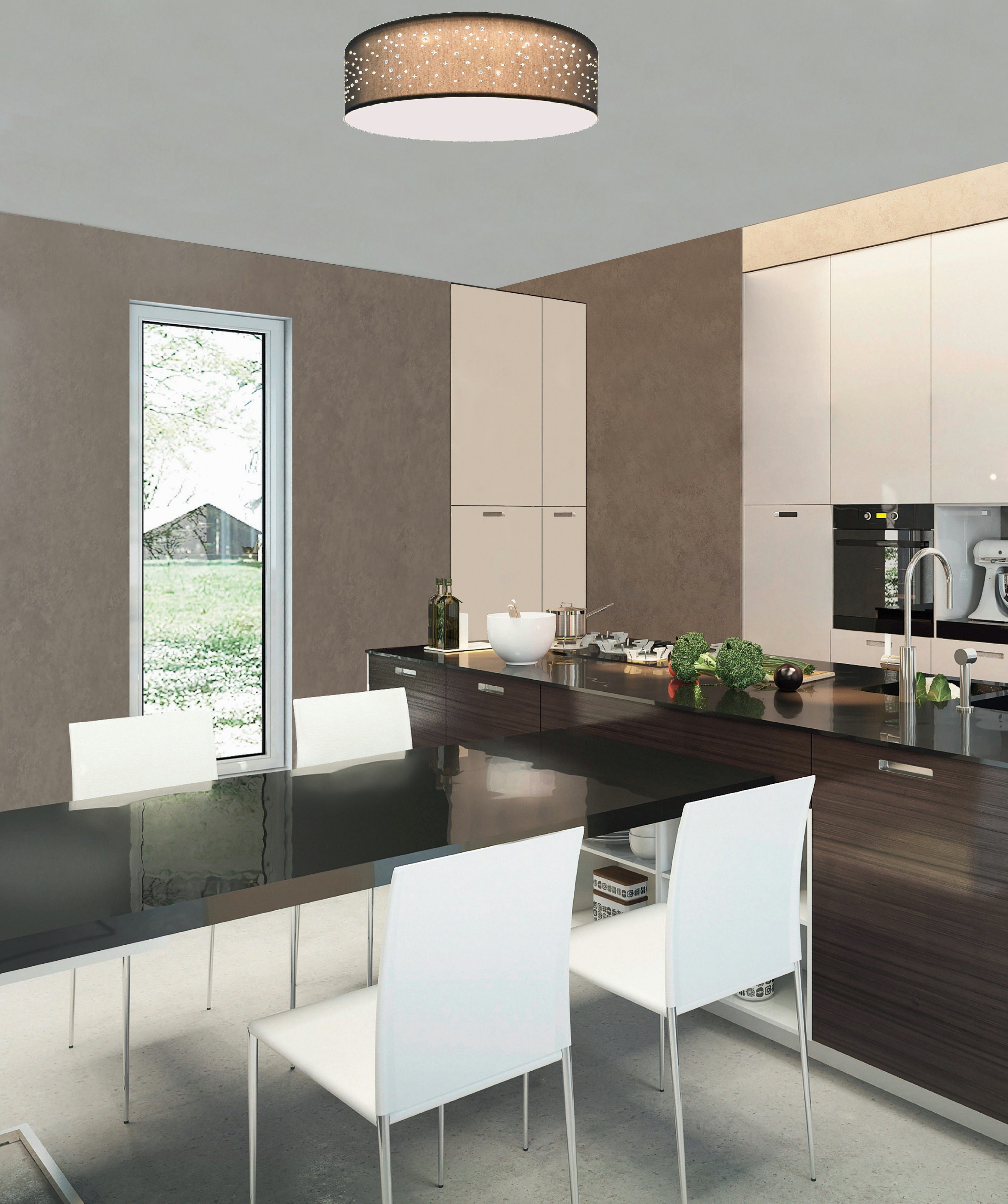Leuchtmittel | 3134L LED Deckenleuchte mit 38cm Ø Sternenhimmel Stoffschirm in *BRAUN* rund inkl. 2x E27 LED Leuchtmittel 3000K warmweiß für Wohnzimmer - Schlafzimmer- Flur |