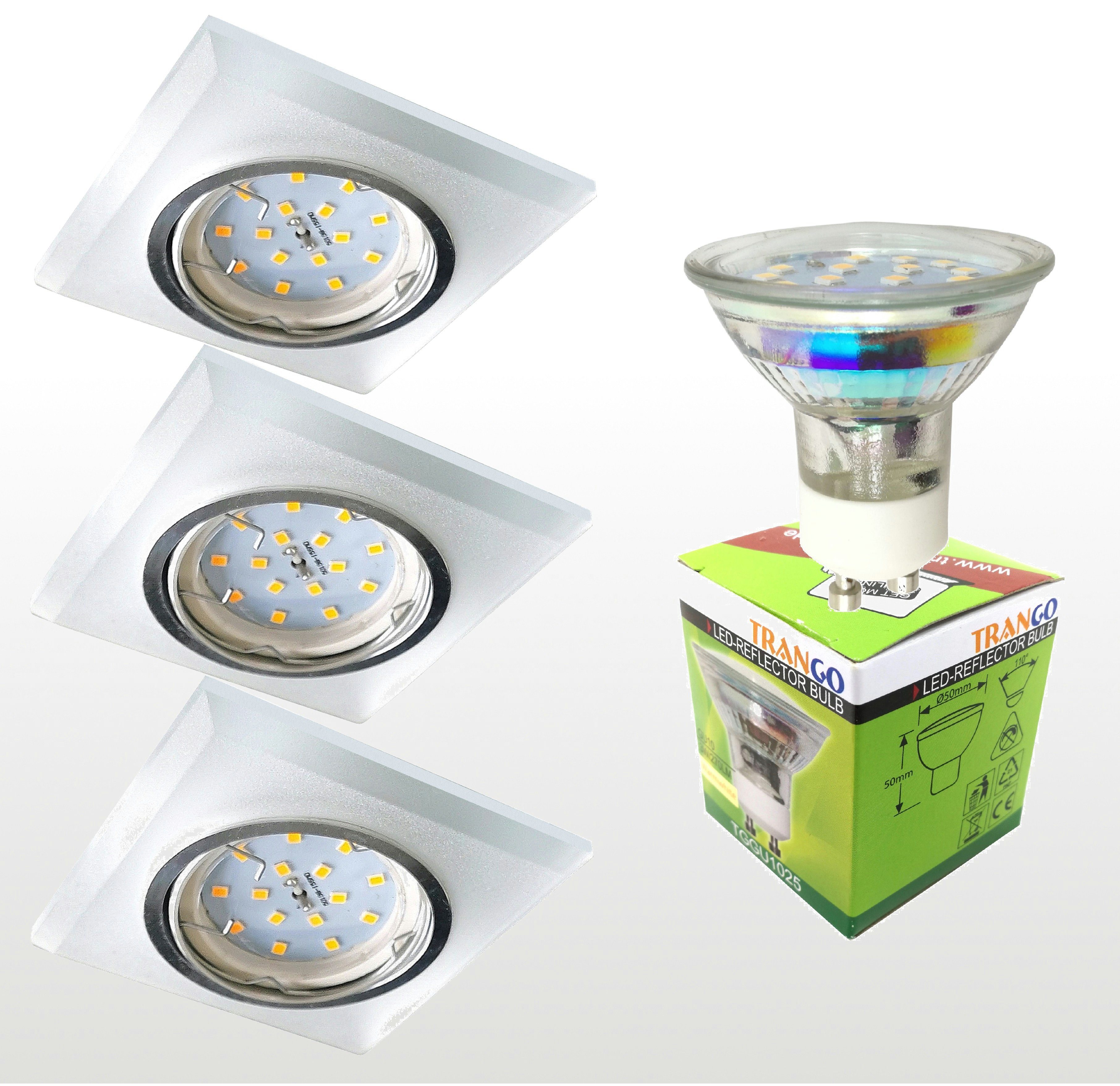 Leuchtmittel | 3er Set 6729(S)-03GU5W-AK *CRYSTAL* LED Deckenstrahler aus handgeschliffenem Glas & Alu inkl. 3x 5 Watt GU10 LED Leuchtmittel 3000K warmweiß |