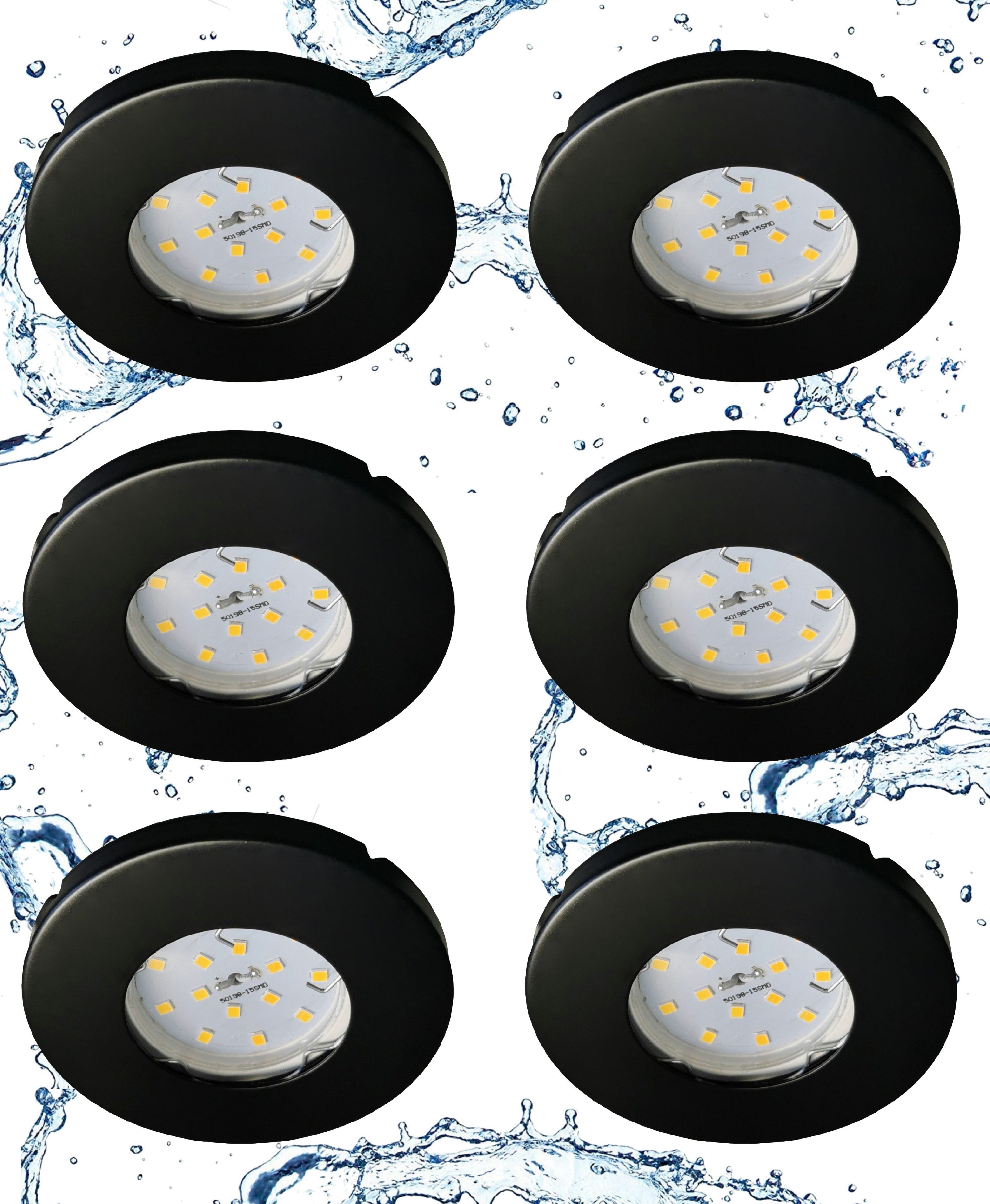 Leuchtmittel | 6er Set 6729IP-065-5WAK IP44 Einbaustrahler in Schwarz matt inkl. 6x 5 Watt GU10 LED Leuchtmittel 3000K warmweiß & GU10 Fassung, Außen |