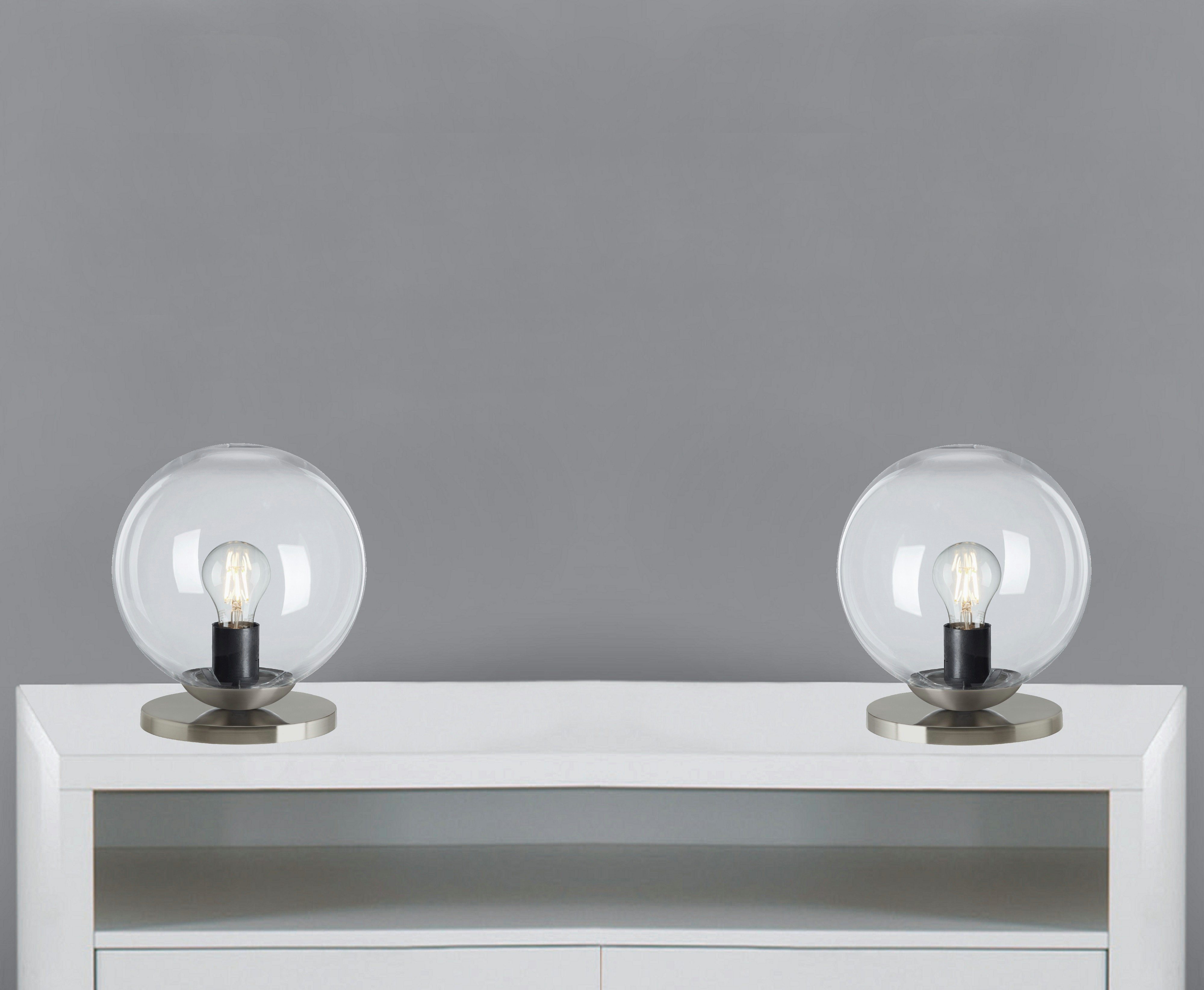 Leuchtmittel | 2er Pack Retro 7010C*2 Nachttischlampe *SUN* Glaskugel Tischleuchte in klar inkl. Kabelschalter & E27 Lampenfassung, Fensterbank Leuchte, Nachttischleuchte |
