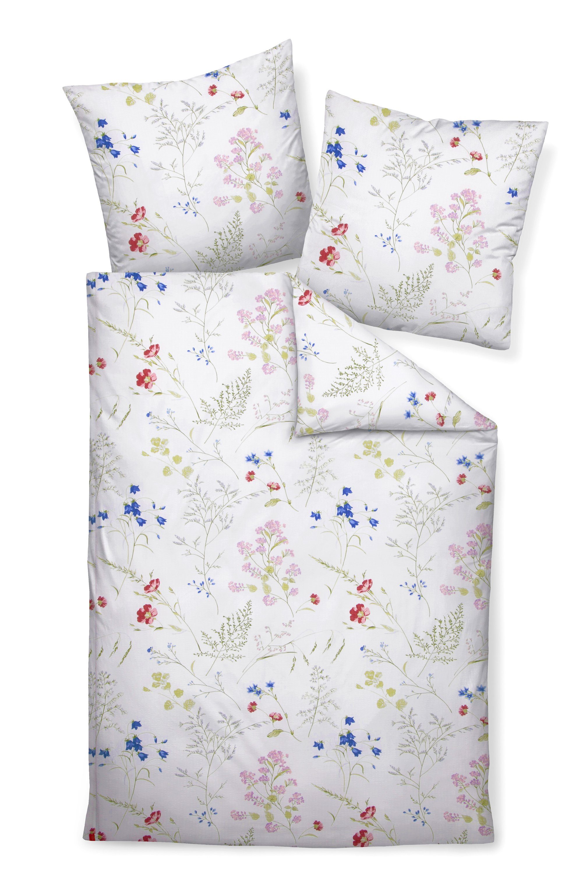 Traumschloss Bettwäsche Deluxe Premium, Seersucker, 2 teilig, weiße Bettwäsche verziert mit Blumen und Sträuchern