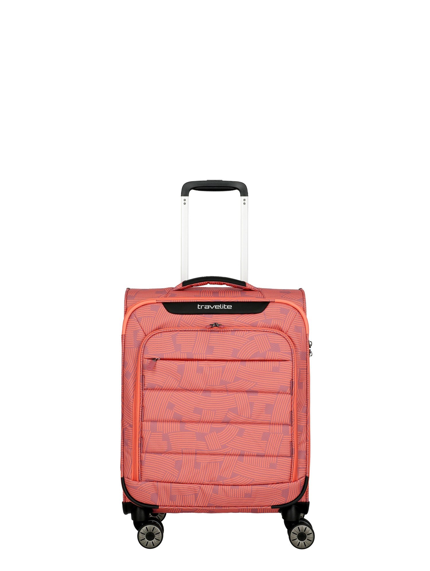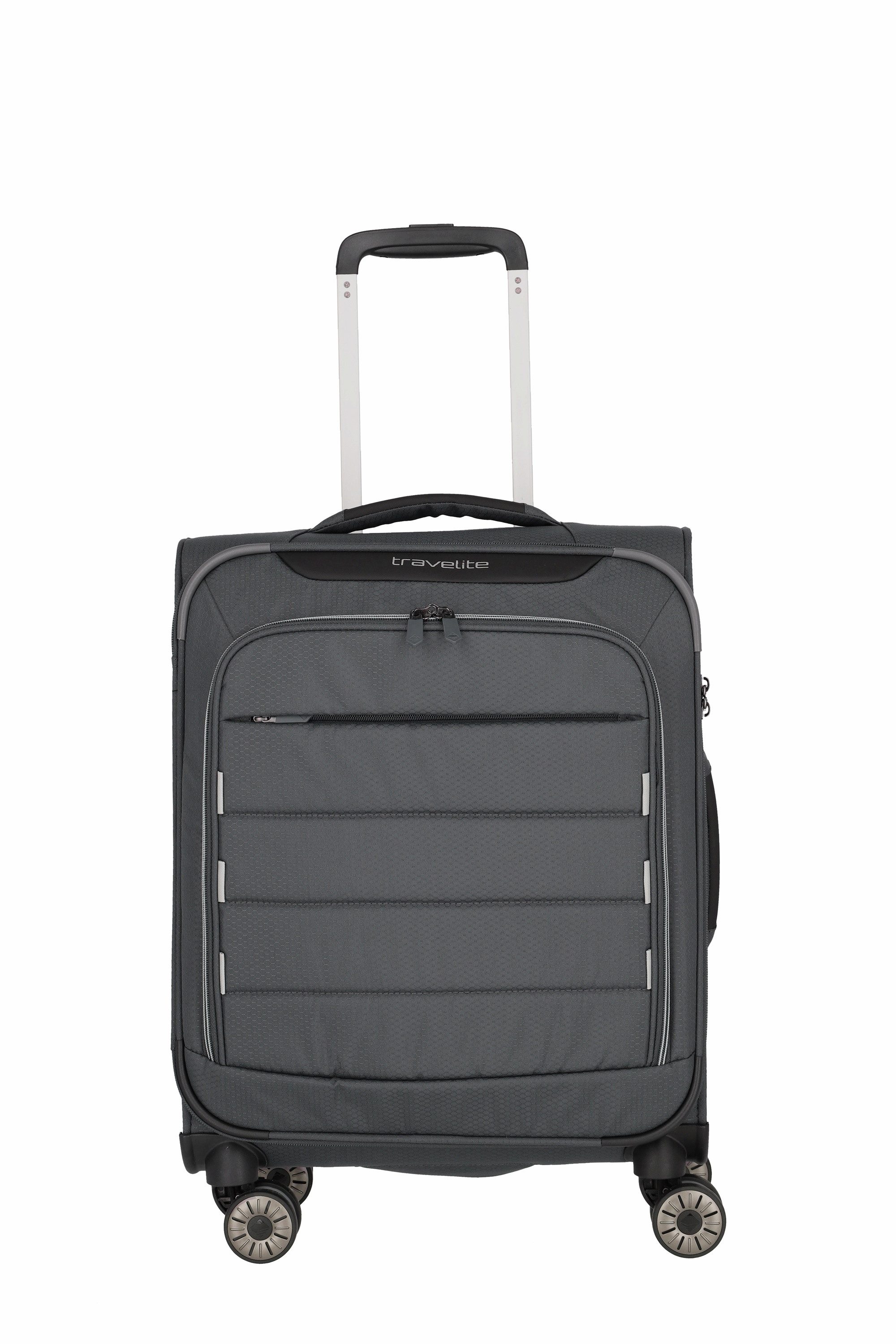 Außenausstattung | Arretierbares und versankbares Teleskopgestänge, versenktes TSA Sicherheitsschloss, 2 Fronttaschen mit Reißverschluss, Griff an der Seite |