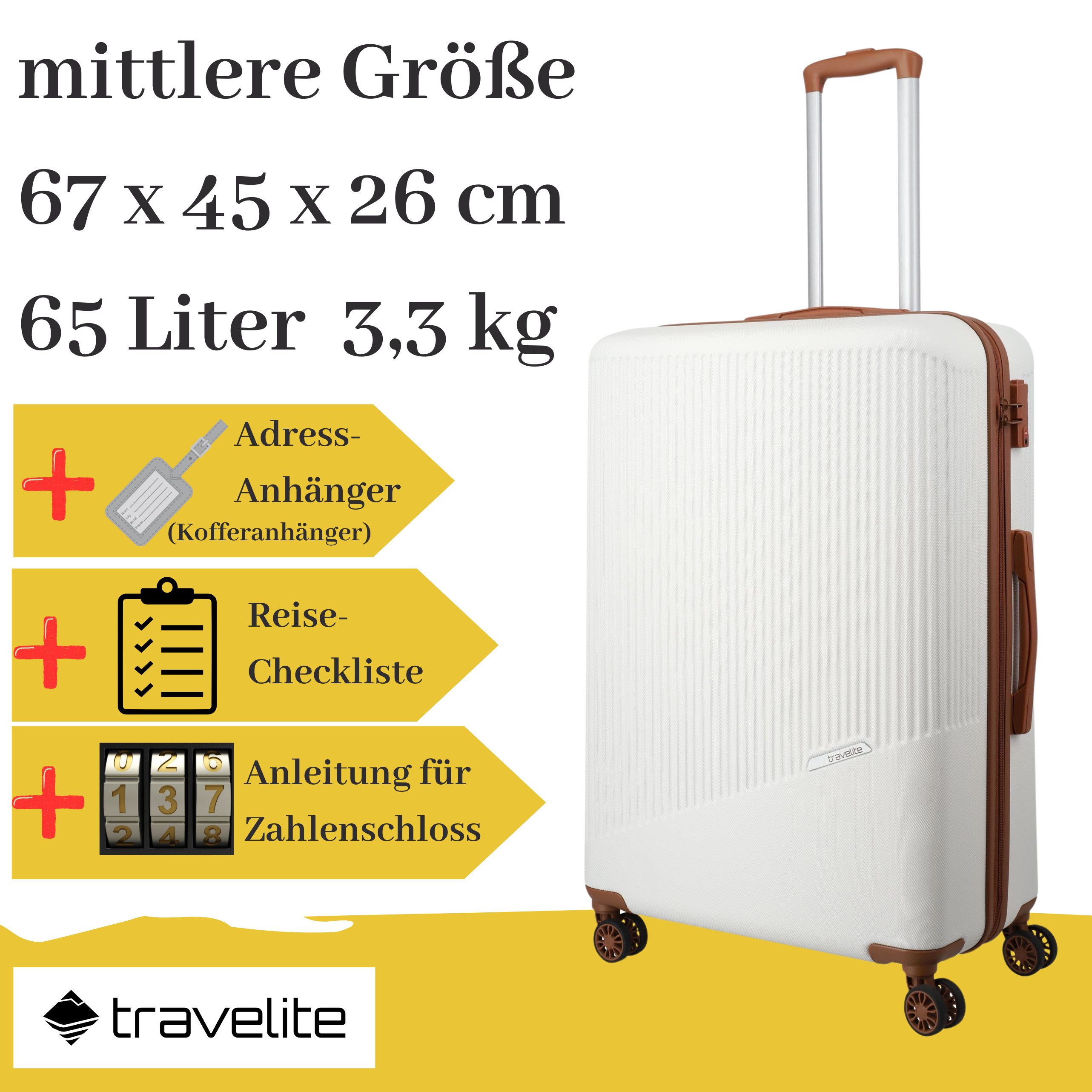 Der Travelite Hartschalentrolley BALI in der Размер M kombiniert Stil, Funktionalität und Sicherheit für Ihre Reisen. Mit durchdachtem Design und robustem Material ist dieser Trolley die perfekte Wahl für alle, die viel unterwegs sind.