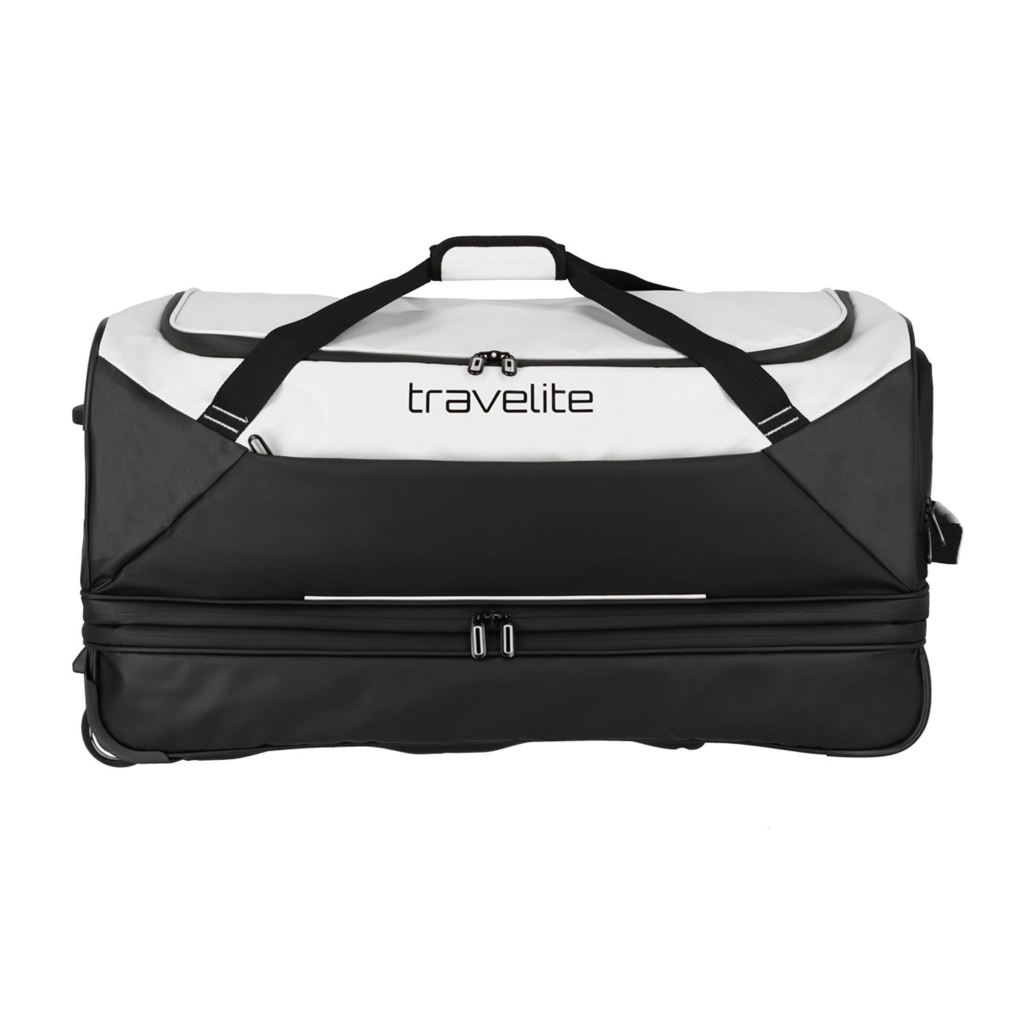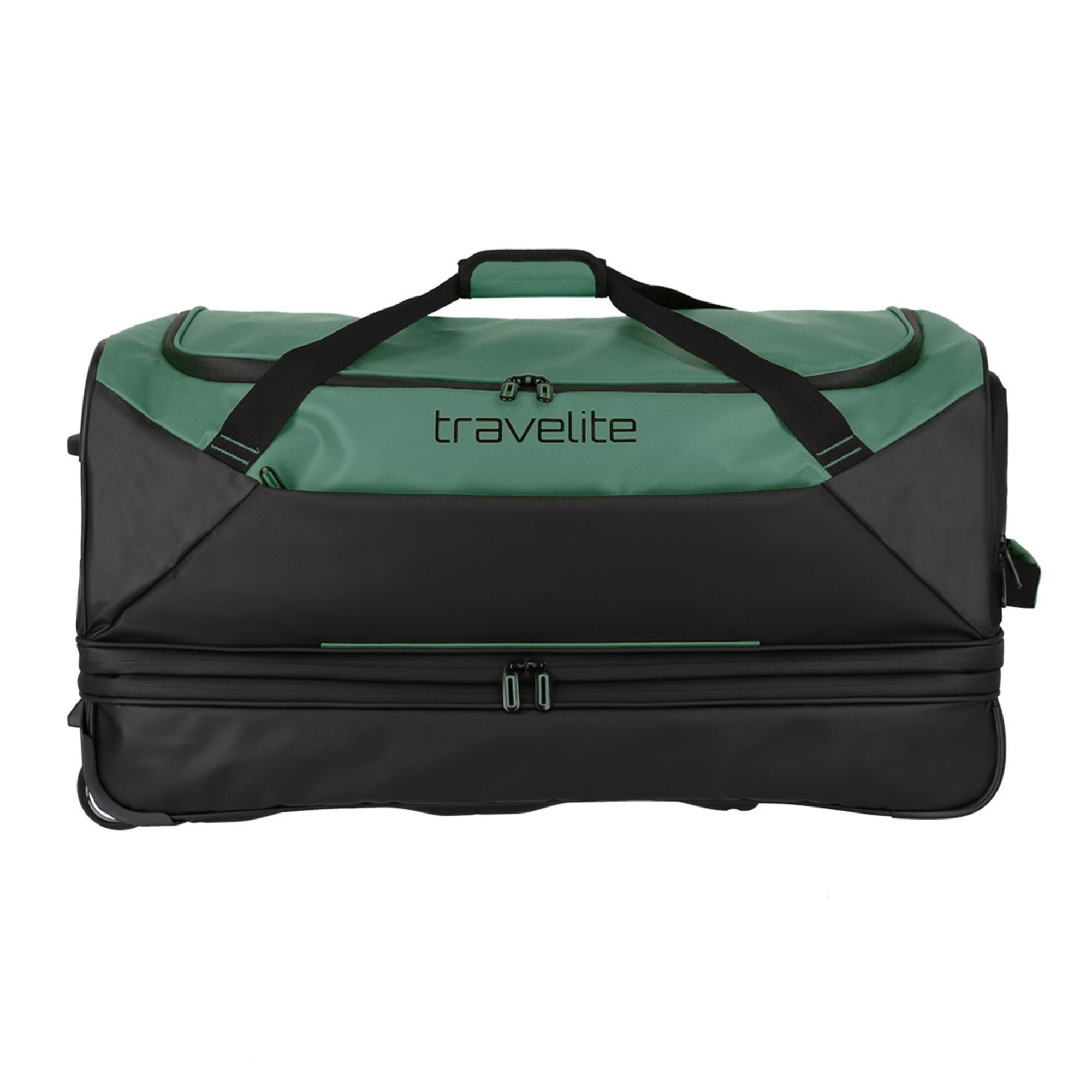 geräumige Reisetasche von Travelite der Basics Serie in stylischem, dynamischem Design. Diese Tasche aus robustem, wasserabweisendem Material bietet mit ihrem geräumigen Hauptfach sowie unter anderem einem großen Außenfach und einem Reißverschlussfach innen ordentlich Stauraum und gute Organisationsmöglichkeiten. Dank dem arretierbaren Griff und den beiden leichtgängigen Rollen schonen Sie auf Reisen dazu noch Ihren Rücken.