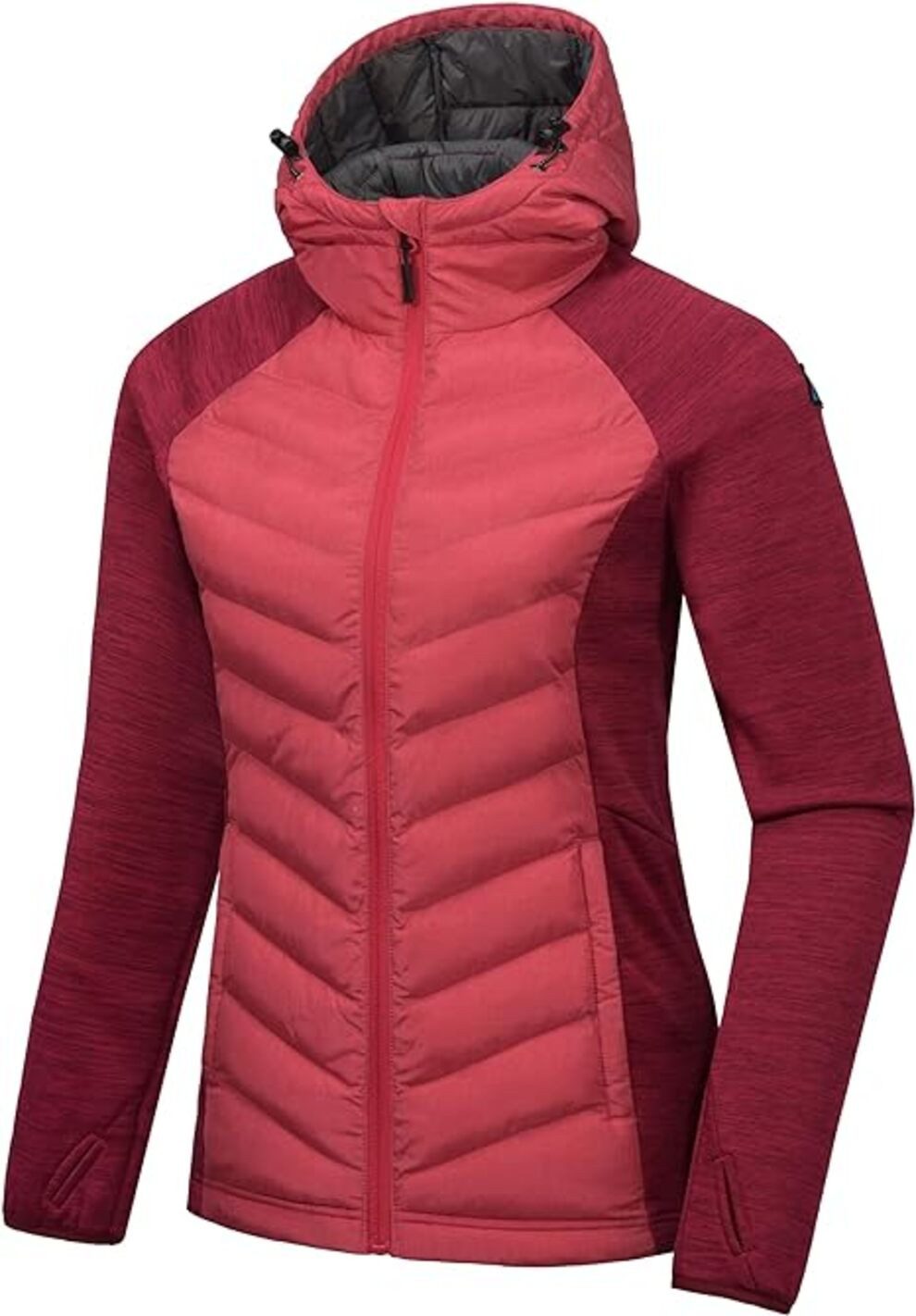 Trekkingjacke Isolierte Wanderjakce Damen Thermojacke Atmungsaktiv Rot-XS