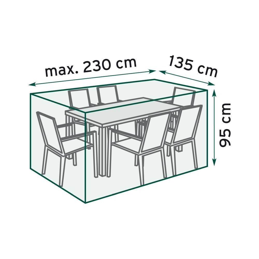 Produktdetails: Zum Schutz vor UV-Strahlen, Nässe, Staub und Schmutz | geeignet für Sitzgruppen bis 2,30 m | Maße: 230 x 135 x 95 cm (230 x 135 x 95 cm (L x B x H) | Material: hochwertiges Polyestergewebe | Farbe: schwarz | Befestigung: zum Überziehen mit Tunnelzugsystem mit Kordelstopper | UV-beständig, wasserabweisend, strapazierfähig |