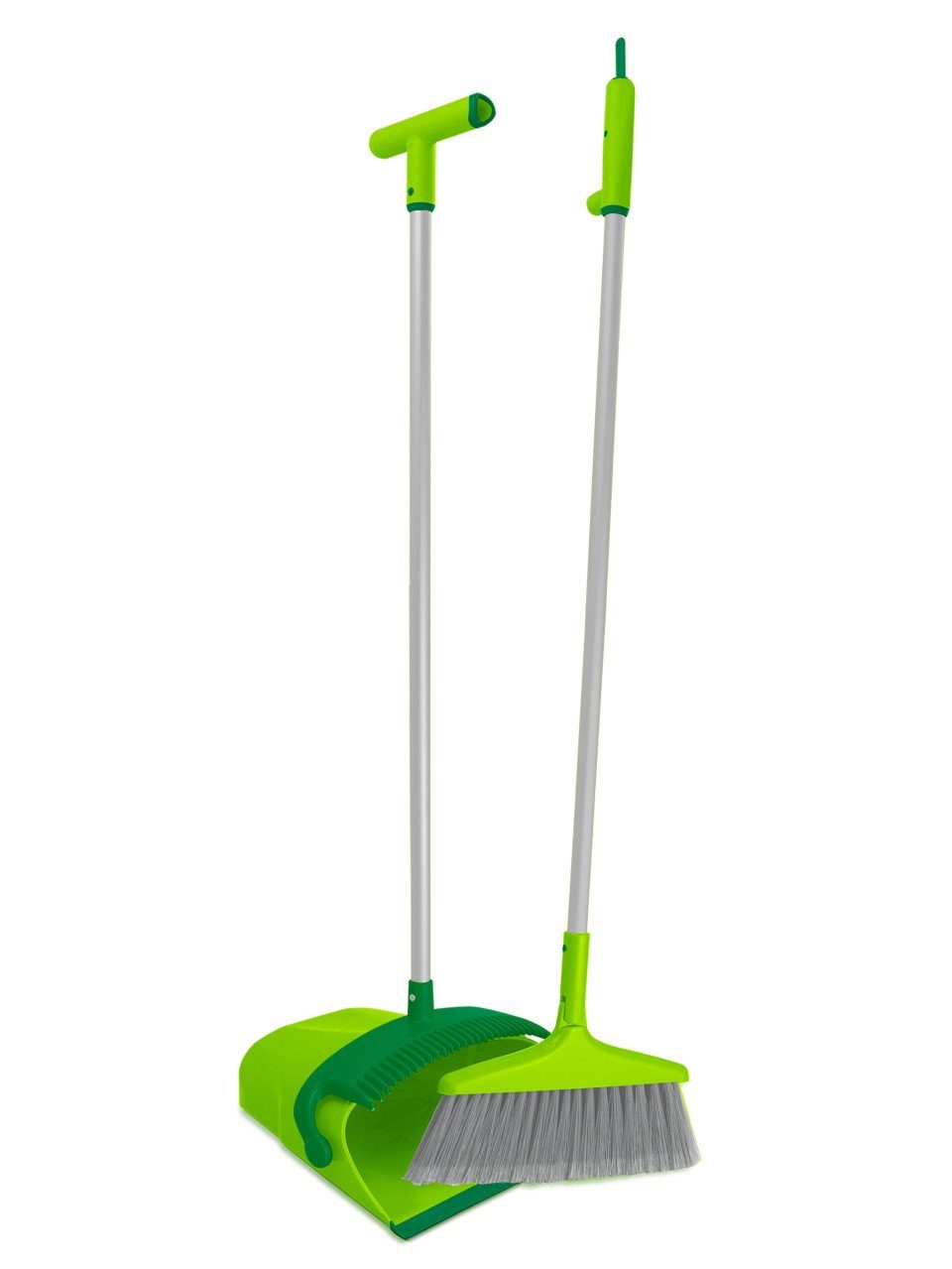 Produktdetails: Geeignet für Beton, Fliesen, Holz, Keramik, Kork, Porzellan | Material: Kunststoff, Aluminiumstiel | Farbe: grün | Maße: 94 x 26 x 26 cm (H x B x T) | Kehrschaufel mit Gummilippe für sauberes aufkehren und Klappfunktion beim Anheben | Besen mit Schrägborsten für schwer erreichbare Stellen | auch ohne Stiel verwendbar | Lieferumfang: Handfeger, Kehrschaufel |