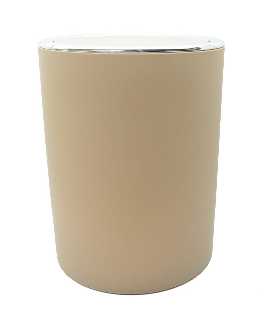 Produktdetails: Maß: 18 x 24 cm (Ø x H) | Fassungsvermögen: 5 Liter | Material: Kunststoff | Farbe: cappuccino matt | mit Kippdeckel | mit Müllbeutelhalterung |
