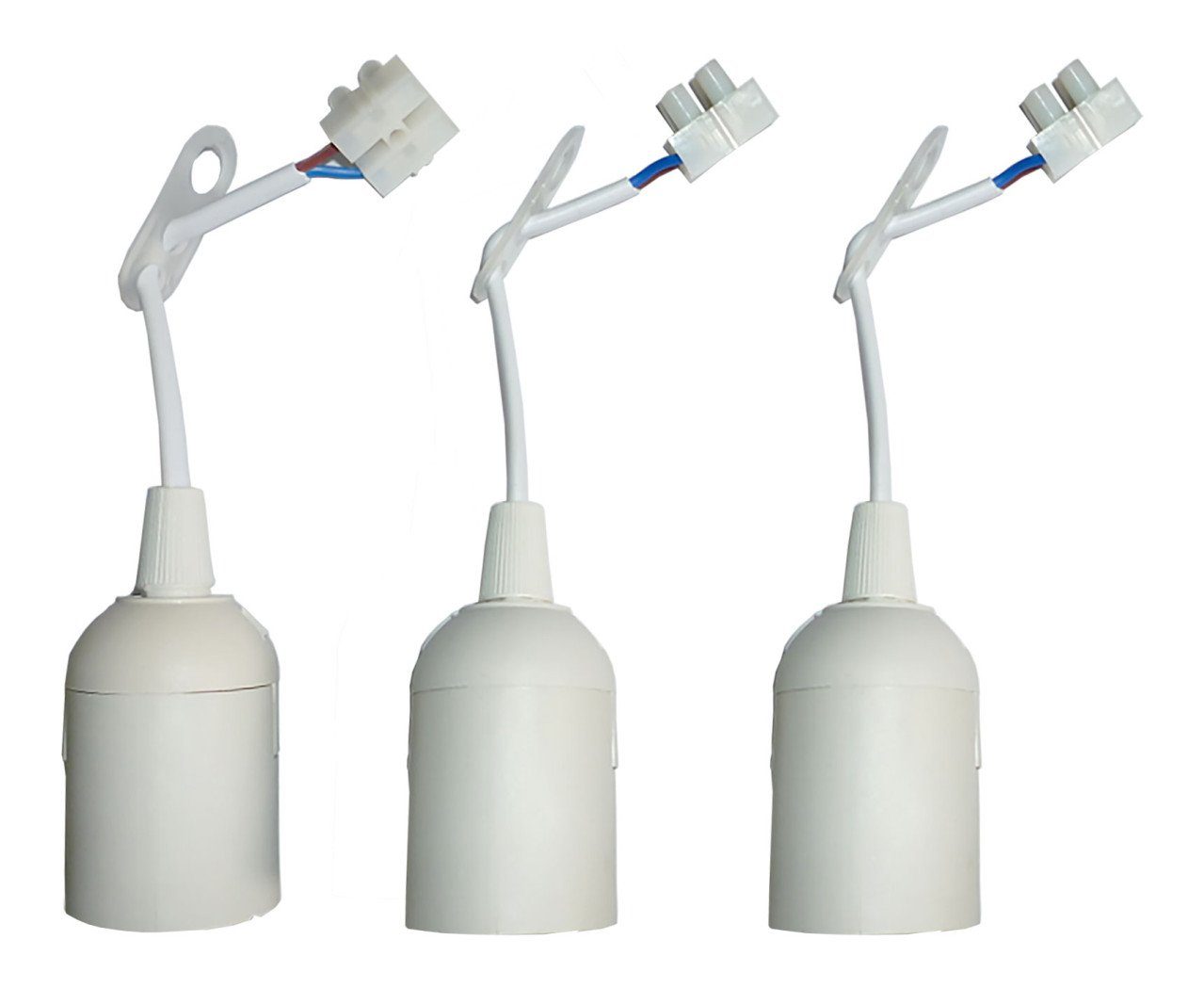 Nennspannung: 230V AC 50Hz | max. Leistung: 60W | Fassung: E 27 | Anschluss: ca. 10 cm | mit Anschlussklemme | Inhalt: 3 Stück |
