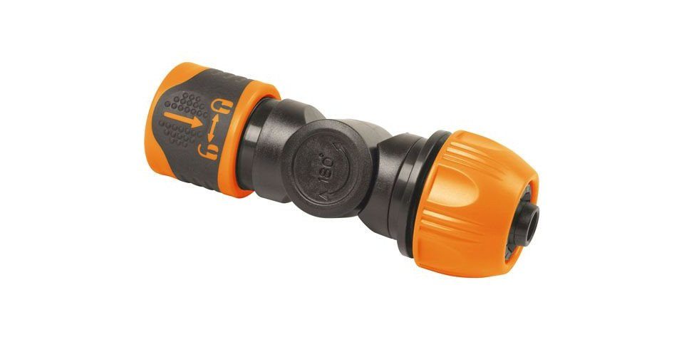 Zur Installation am Schlauchanfang | Anschluss 12,7 mm (1/2") und 19,05 mm (3/4") | Material: Kunststoff | mit 180° Gelenk | Maße: 12,5 x 4,5 cm (L x Ø) | Farbe: schwarz, orange |