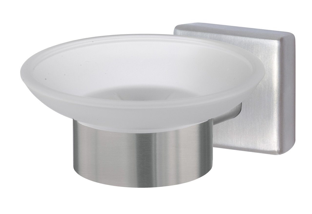 Produktdetails: Maße: 6,5 x 11 cm (H x Ø), Wandhalterung 5 x 5 cm | Material: Halter Edelstahl gebürstet, Glasschale | Farbe: weiß, edelstahl gebürstet | Befestigung: zum Bohren oder Kleben (Material zum Kleben separat erhältlich) | einfach zu reinigen, sicherer Halt und hohe Belastbarkeit | Lieferumfang: Seifenschale, Befestigungsmaterial (zum Bohren) |
