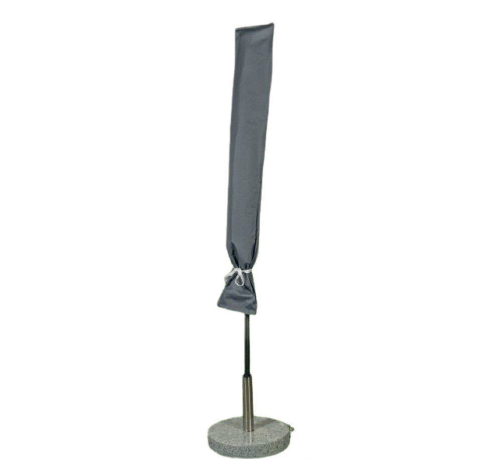 Produktdetails: Zum Schutz vor UV-Strahlen, Nässe, Staub und Schmutz | geeignet für Sonnenschirme bis 4,00 m | Maße: 195 x 32 cm (L x Ø) | Material: hochwertiges Polyestergewebe | Farbe: grau | Befestigung: zum Überziehen mit Tunnelzugsystem mit Kordelstopper | UV-beständig, wasserabweisend, strapazierfähig |