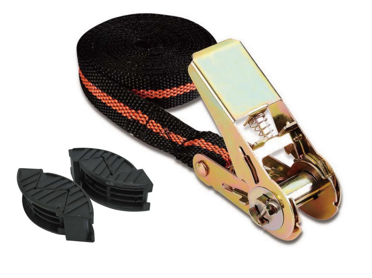Produktdetails: Zurrkraft max: 245 kg | Длина: 5 m | Stärke: 25 mm | Farbe: schwarz | Material: Polypropylen | mit Spannratsche, 4 Schutzbacken | Lieferumfang: 1 x Spanngurt |