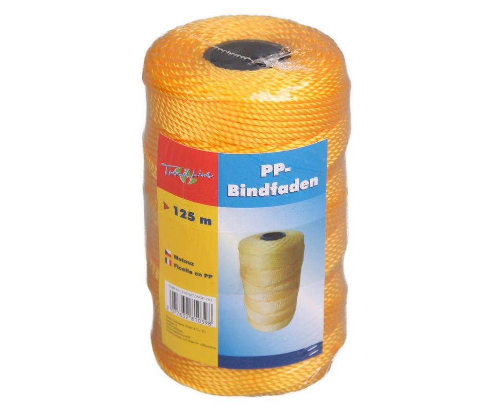 Produktdetails: Длина: 125 m | Stärke: 1 mm | Farbe: orange | Material: Polypropylen | Lieferumfang: 1 x Bindfaden |