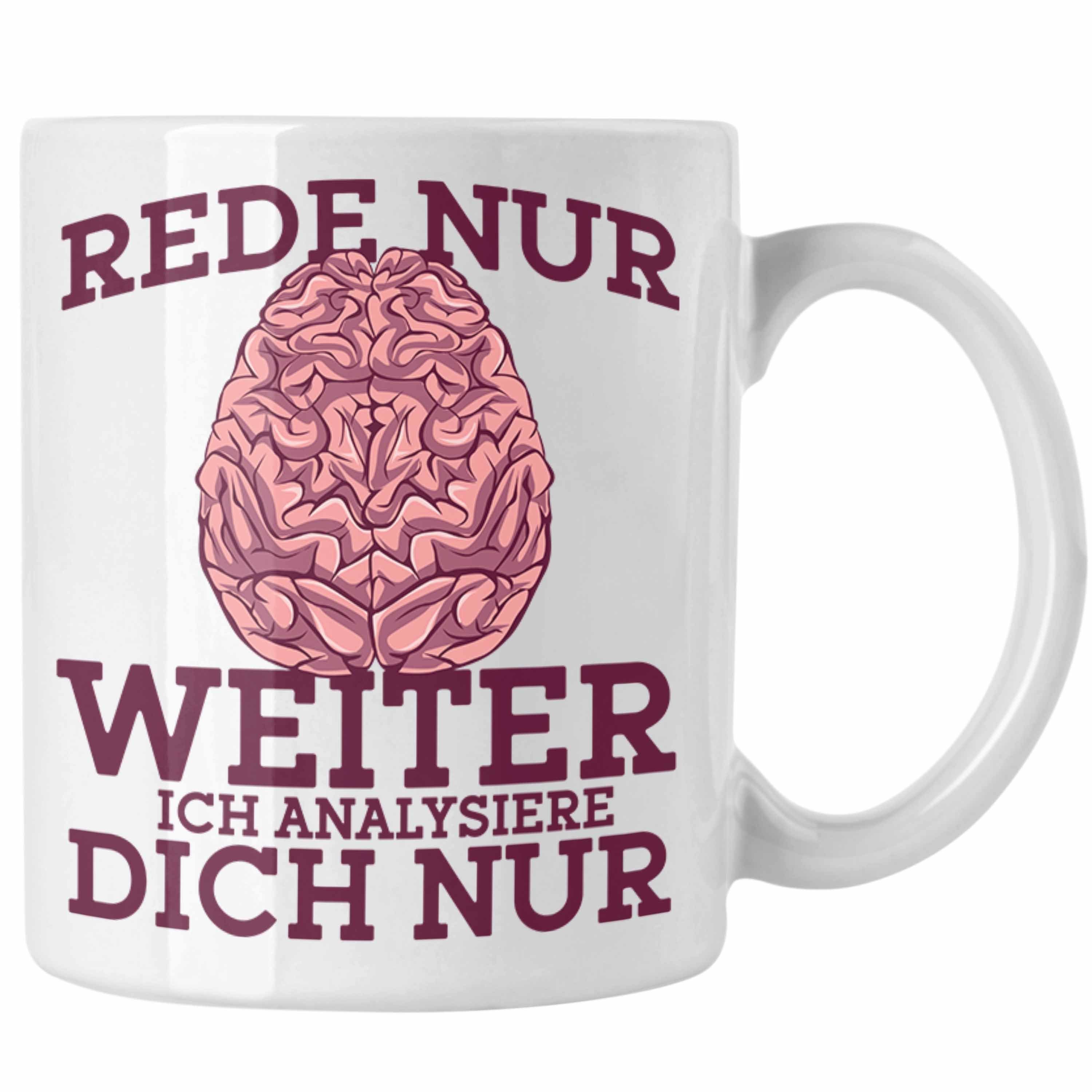 Zeige einem Psychologen mit dieser witzigen Tasse deine Anerkennung. Der Spruch "Rede nur weiter, ich analysiere dich nur" sorgt für humorvolle Momente. toll als Geschenk zum Gebur