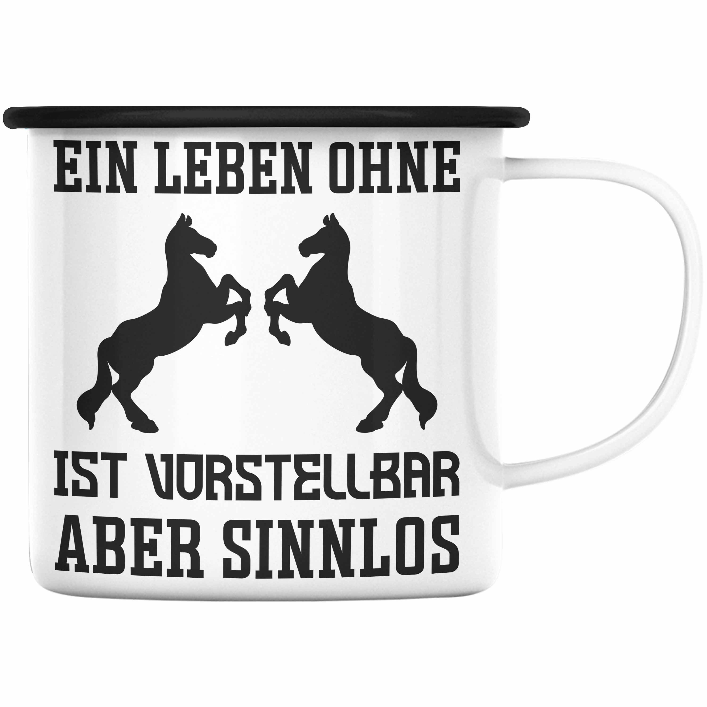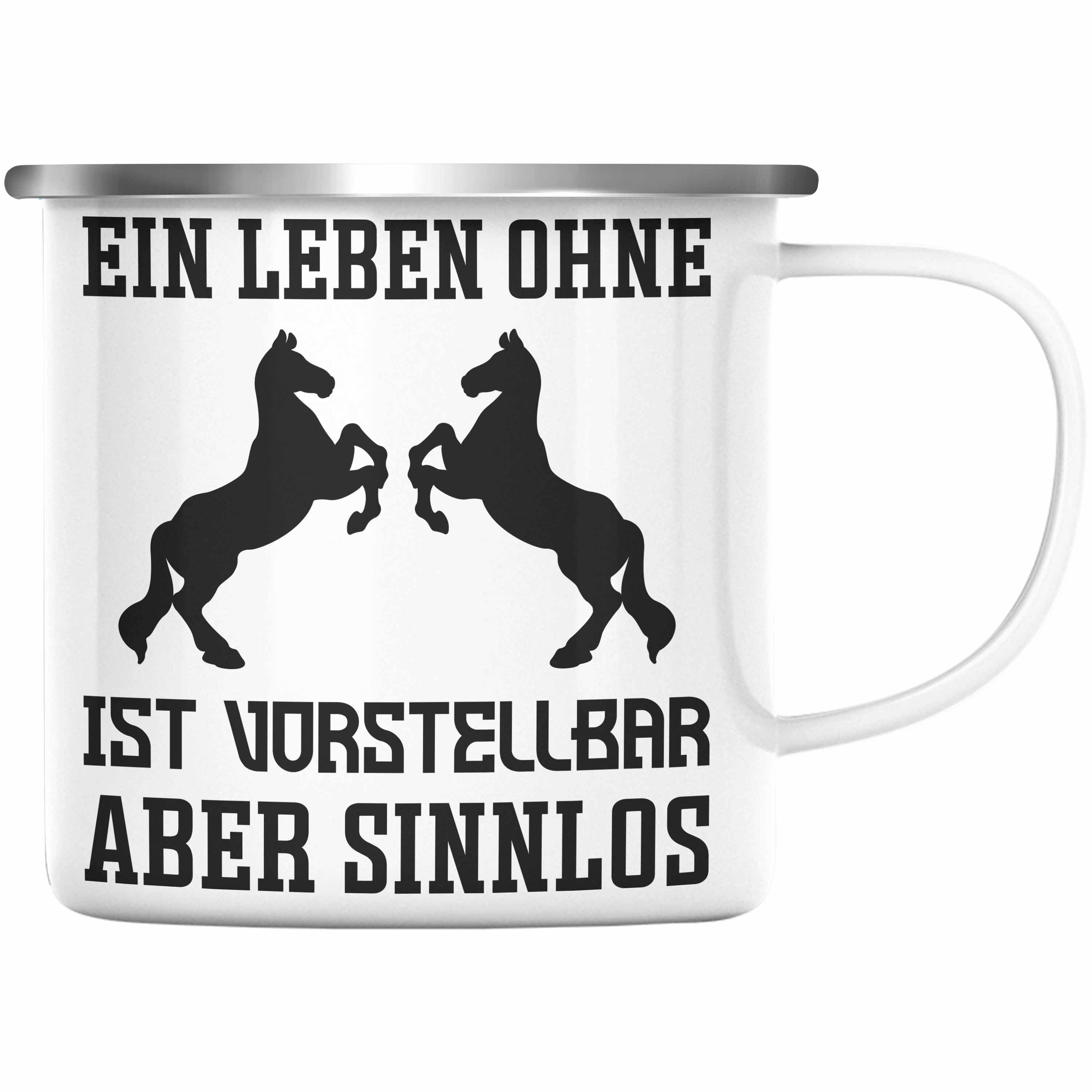 Trendation Thermotasse Trendation - Pferde Emaille Tasse Lustig Reiterin Geschenk Pferde Gesc
