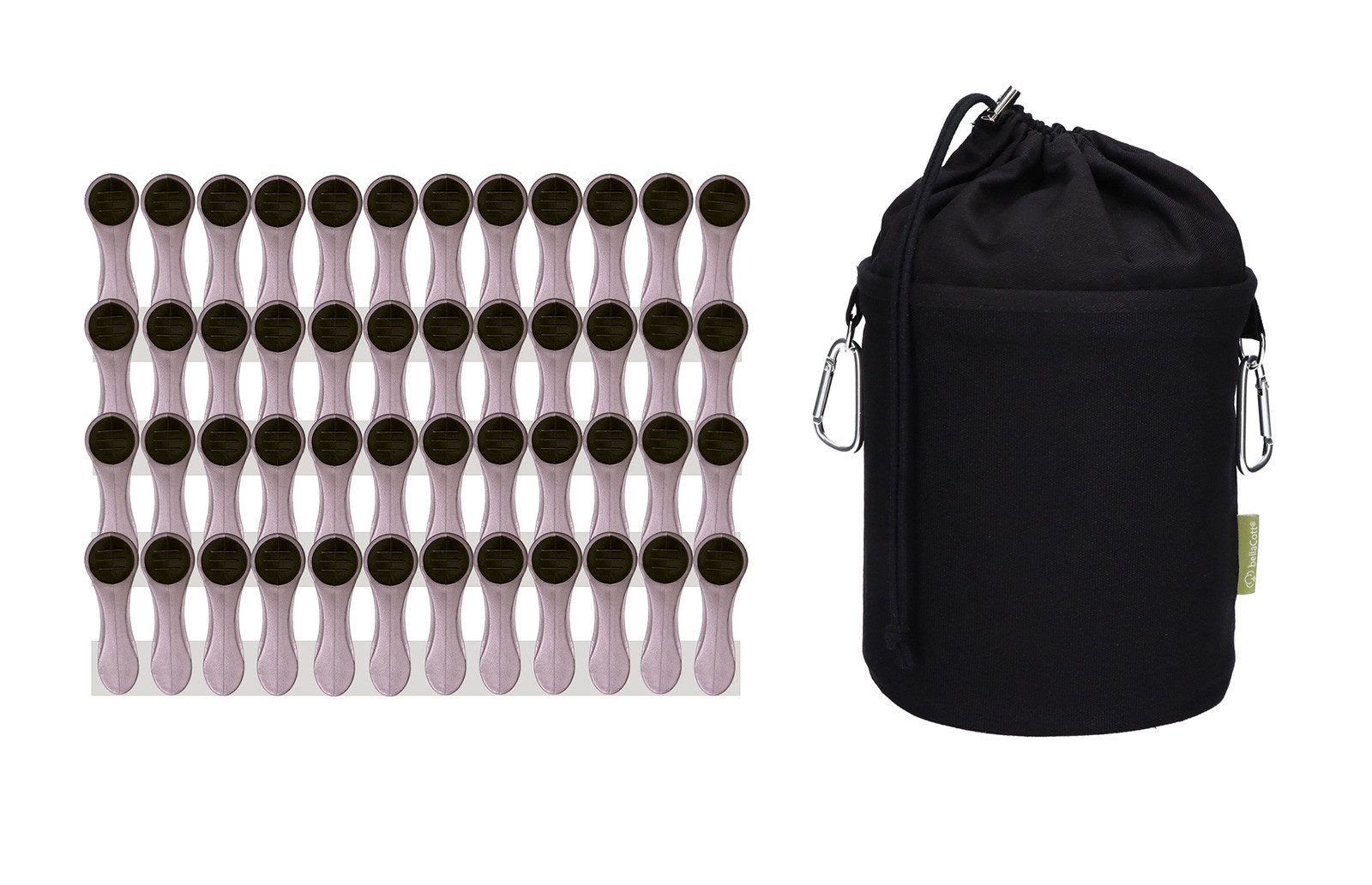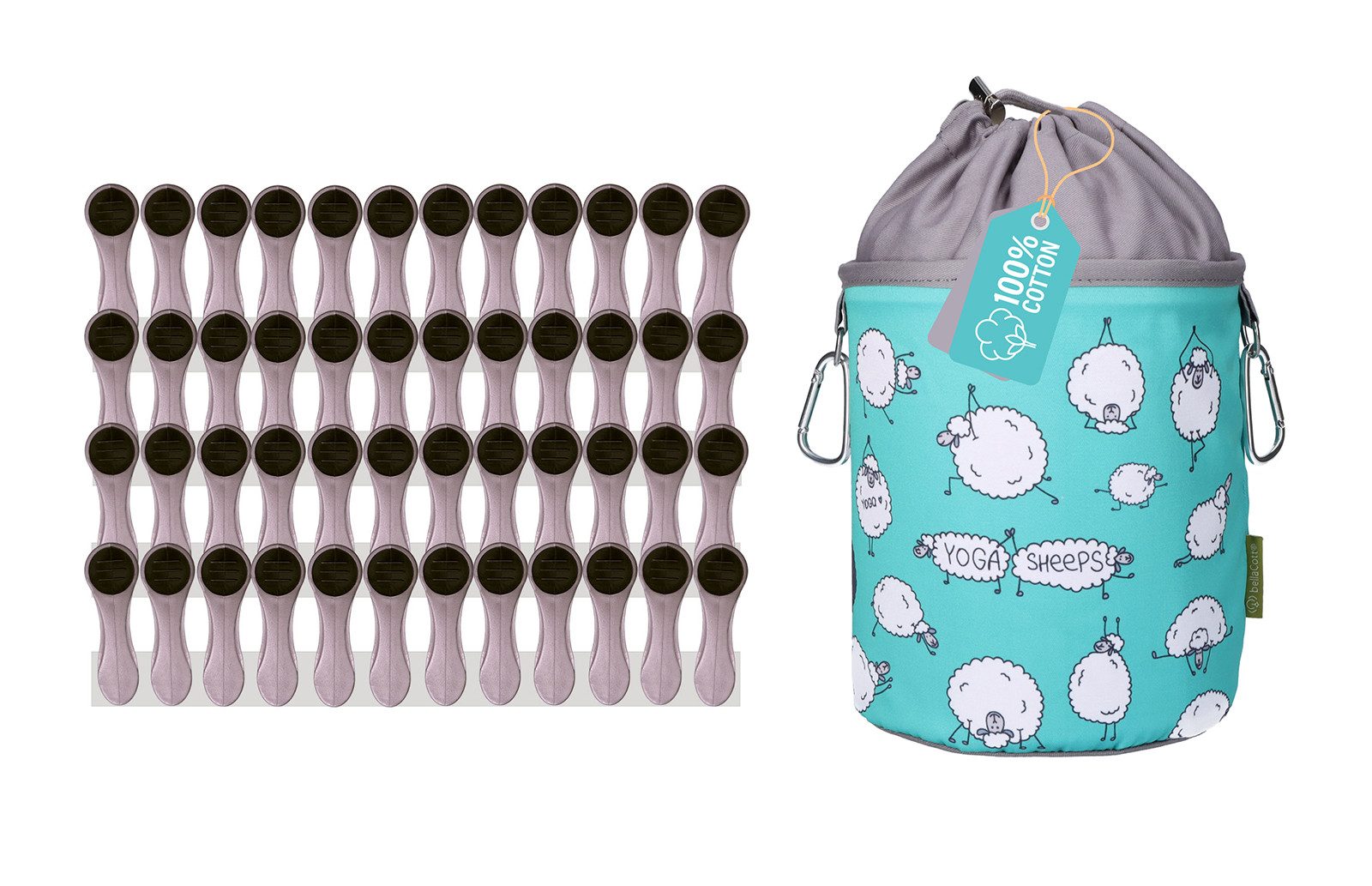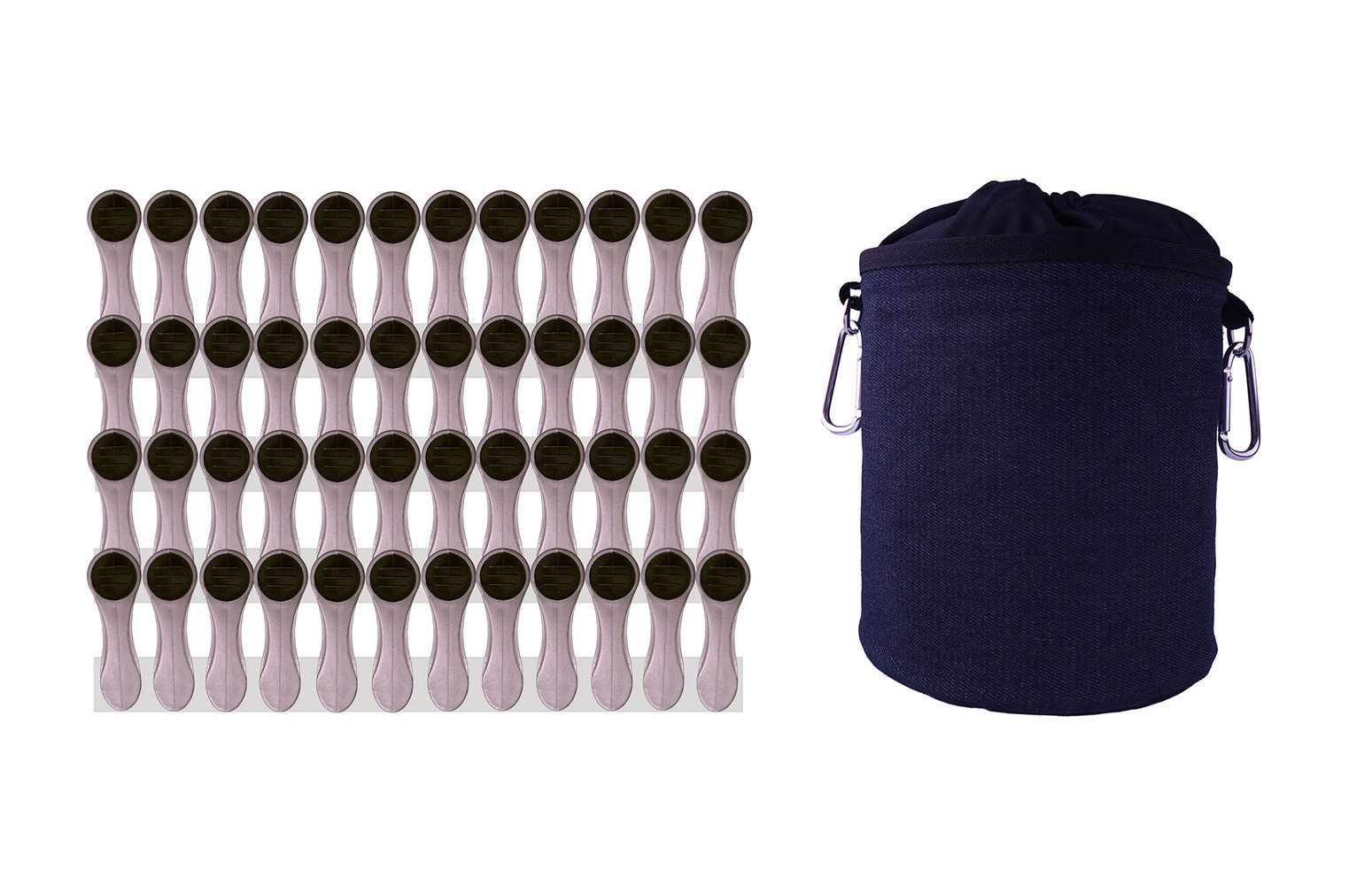 Lieferumfang: 48 Wäscheklammern & 1 blau-schwarzer Wäscheklammerbeutel aus Denim