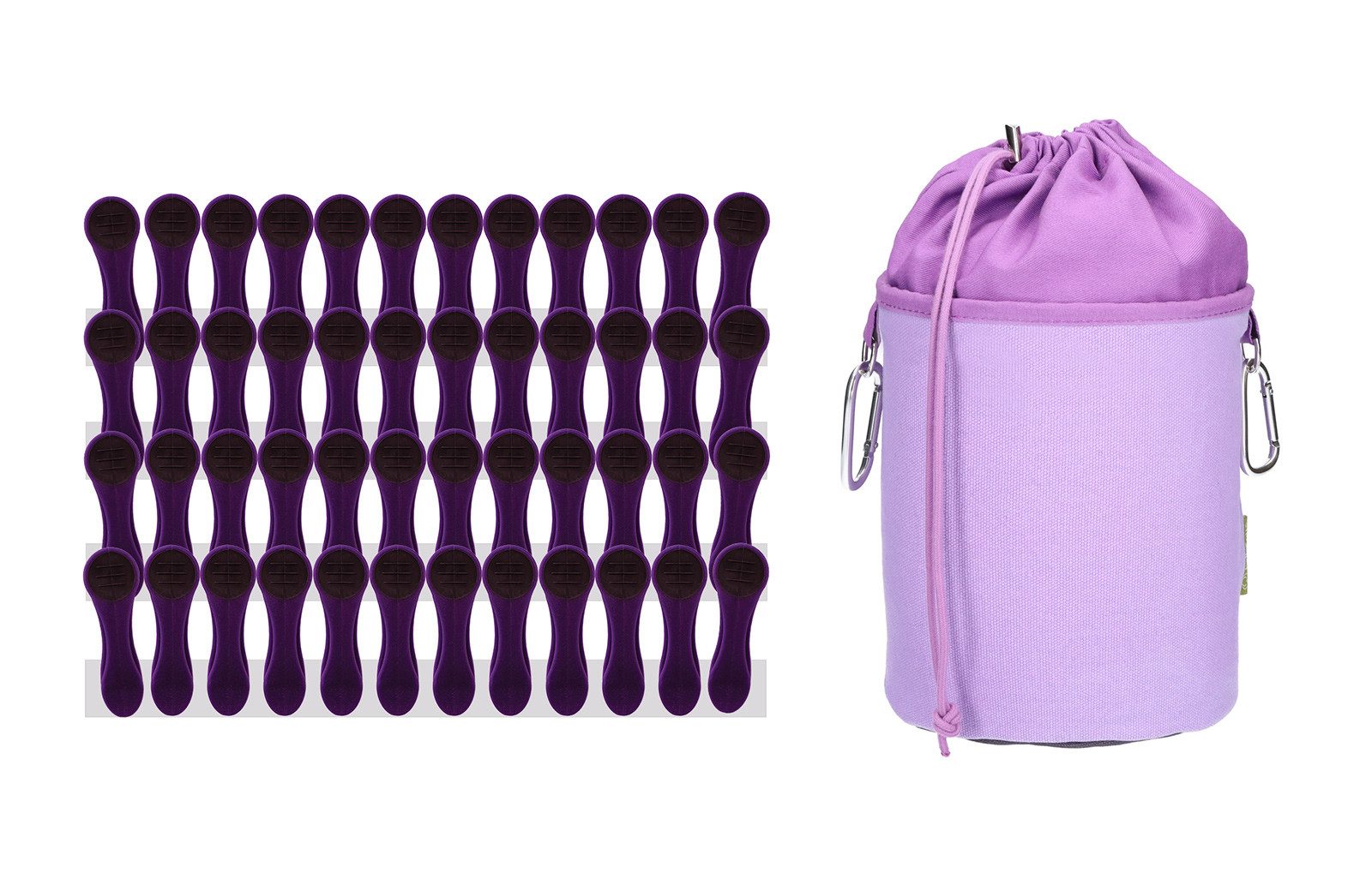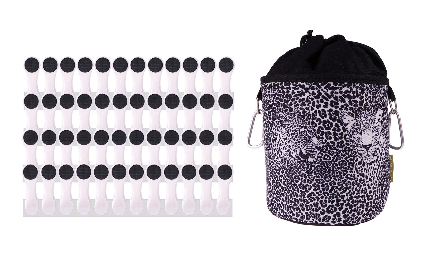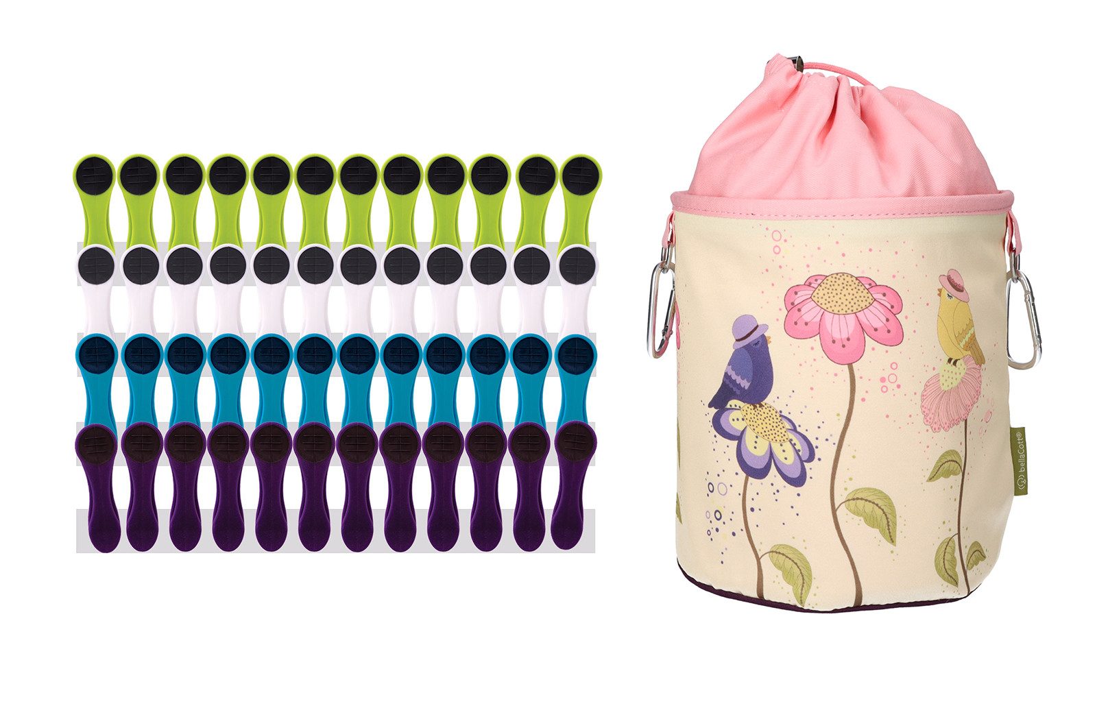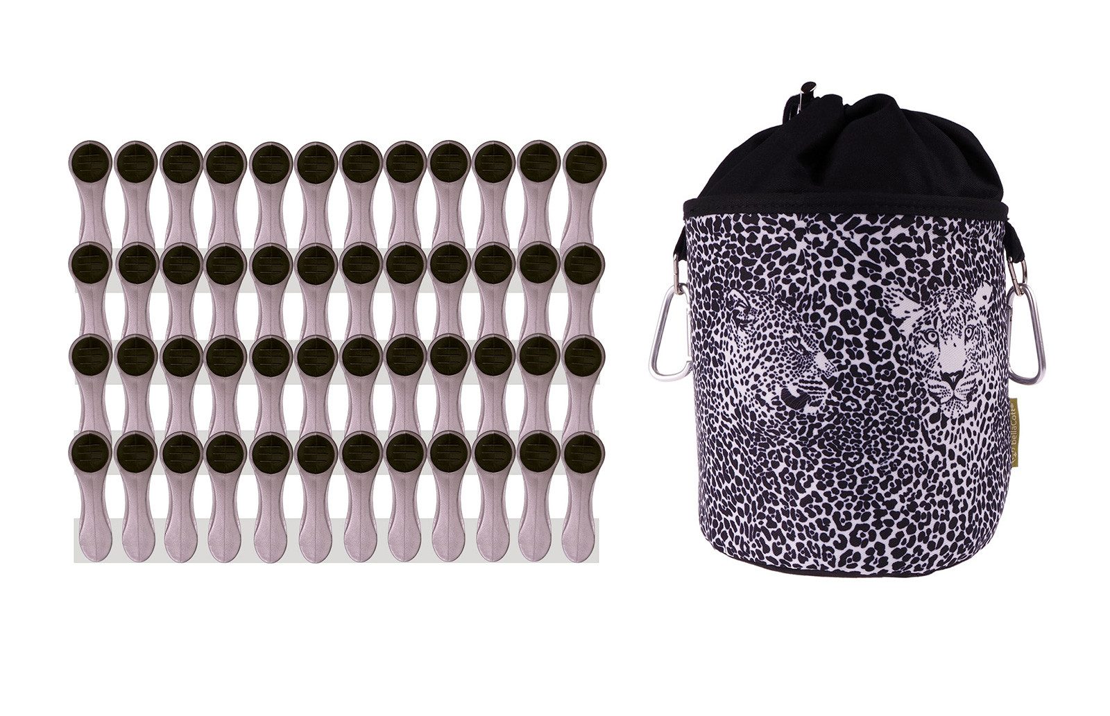 Lieferumfang: 48 Wäscheklammern & 1 blau-schwarzer Wäscheklammerbeutel aus Denim