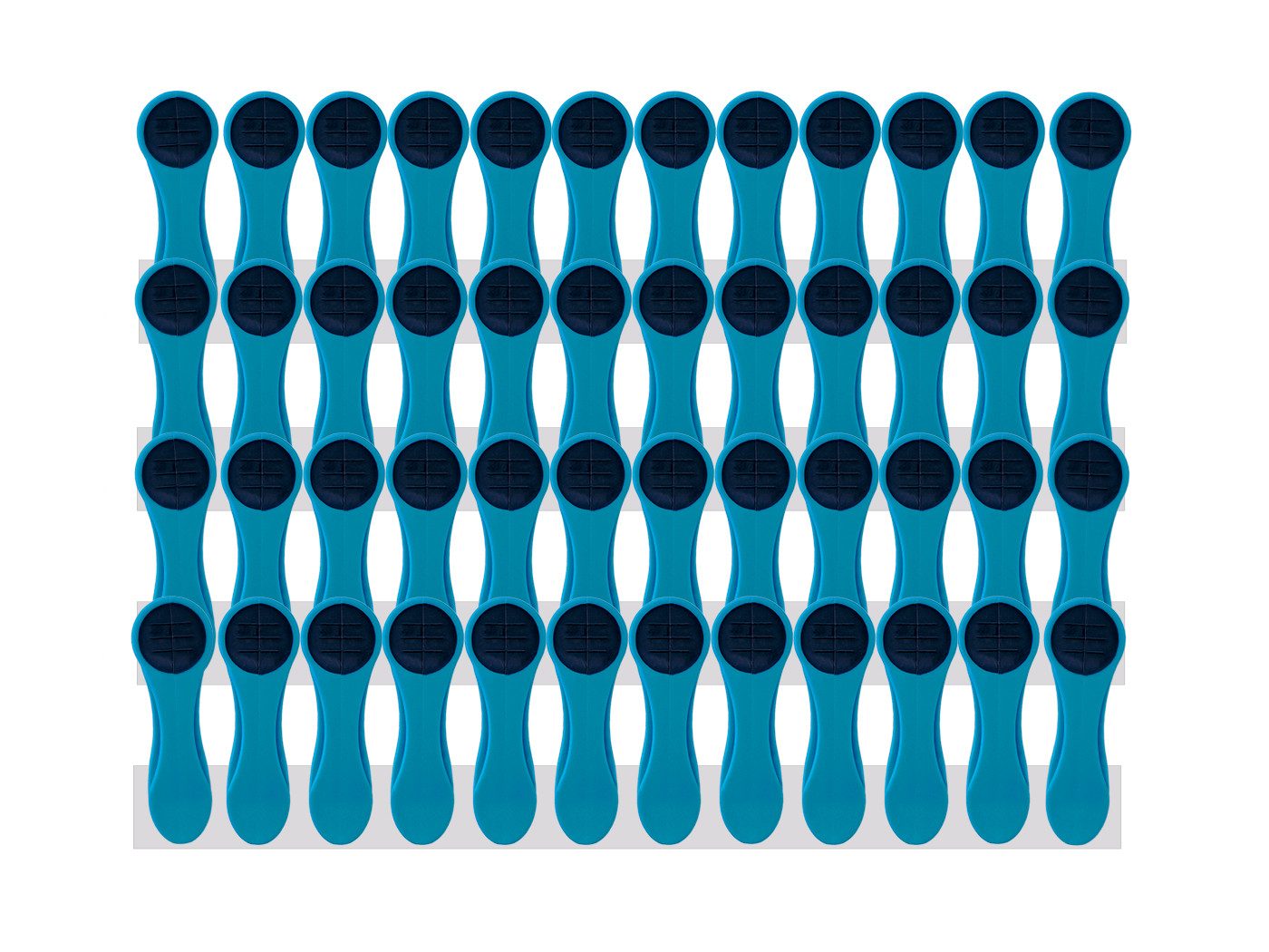 DESIGN – ABMESSUNGEN - MENGE – Zeitloses Design - Farben: Klammerkörper: Blau, Griffe: Anthrazit, Maße/Длина/Breite/mm: 70/22, 48 Stück im Set, optional auch im Set mit einem farblich passenden Wäscheklammerbeutel aus Baumwolle erhältlich.