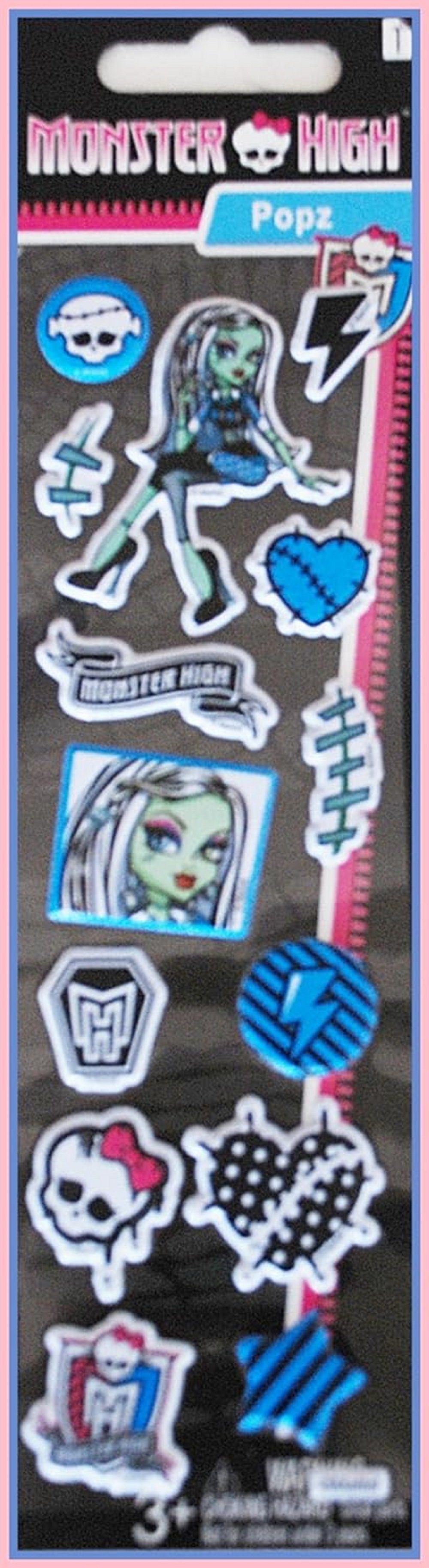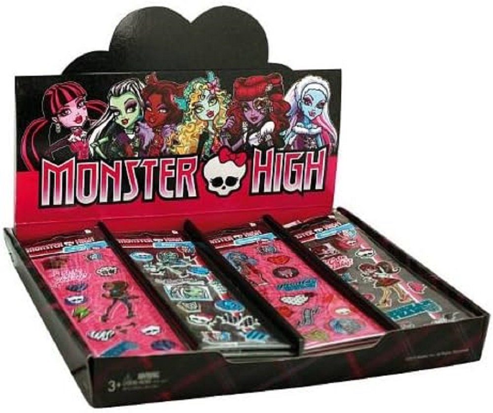 Mitgebsel, Mitbringsel, Give Aways für Mädchen zum Kindergeburtstag oder einer Party . Monster High Sticker Set, Ghoulia Yelps, Frankie Stein, Popz rosa, Stonez -Selbstklebend Bastel Set Mitgebsel -Stickerbogen Monster High - Maße Bogen: ca 16x5cm - ca 12-14 Sticker pro Bogen - 4 Ausführungen, Glitzersticker und 'Popz'-Sticker (3-D Sticker ca 2-3mm dick) .Formen-Sticker von Monster High, ideal für Freundsalben, Briefe, Schulsachen oder kreative Erzeugnisse, 4-fach sortiert, auf Karte im Polybeutel . im Display verpackt - Maße Display geschlossen ca 24x21x3cm