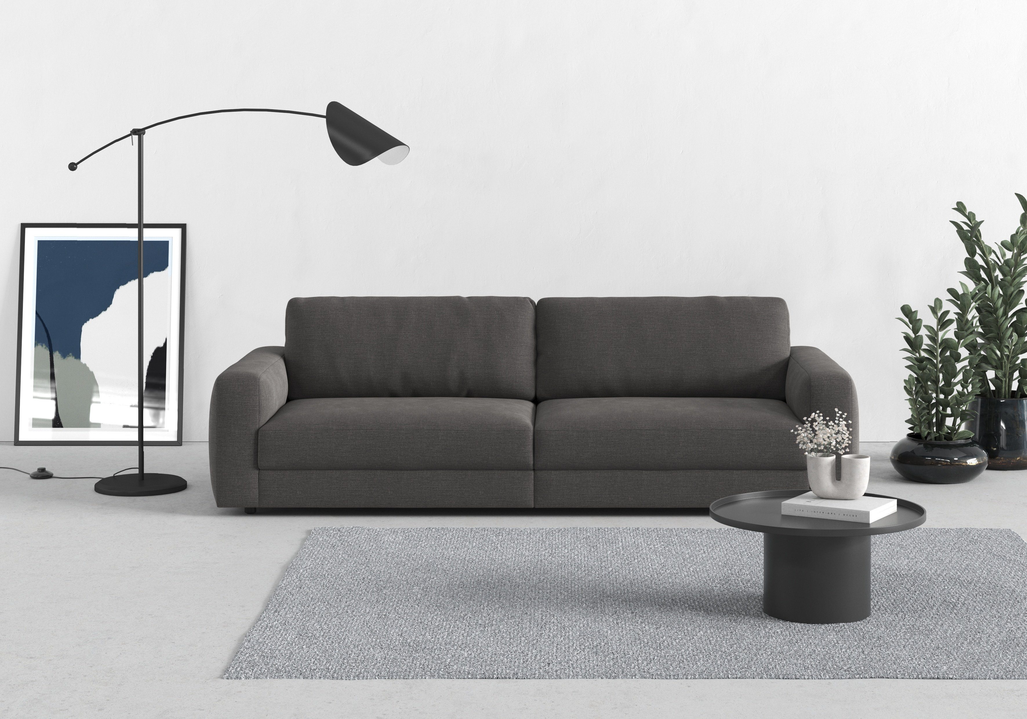 Eine dauerhaft elastische und komfortable Sitzfläche — das bekommst du bei diesem Big-Sofa »Bourbon, Designsofa,« von TRENDMANUFAKTUR, das mit einer hochwertigen Wellenunterfederung ausgestattet ist. Worüber du dich auch freuen kannst, ist das passende Rückenkissen, das nicht nur ein schönes Deko-Element ist, sondern auch für noch mehr Komfort sorgt. Belastbar ist dein neues Möbelstück bis zu 120 Kilogramm. Der hochwertige Strukturstoff ist pflegeleicht und hautsympathisch und überzeugt durch seine Komforteigenschaften. Dieses Modell wurde von Hand gefertigt.