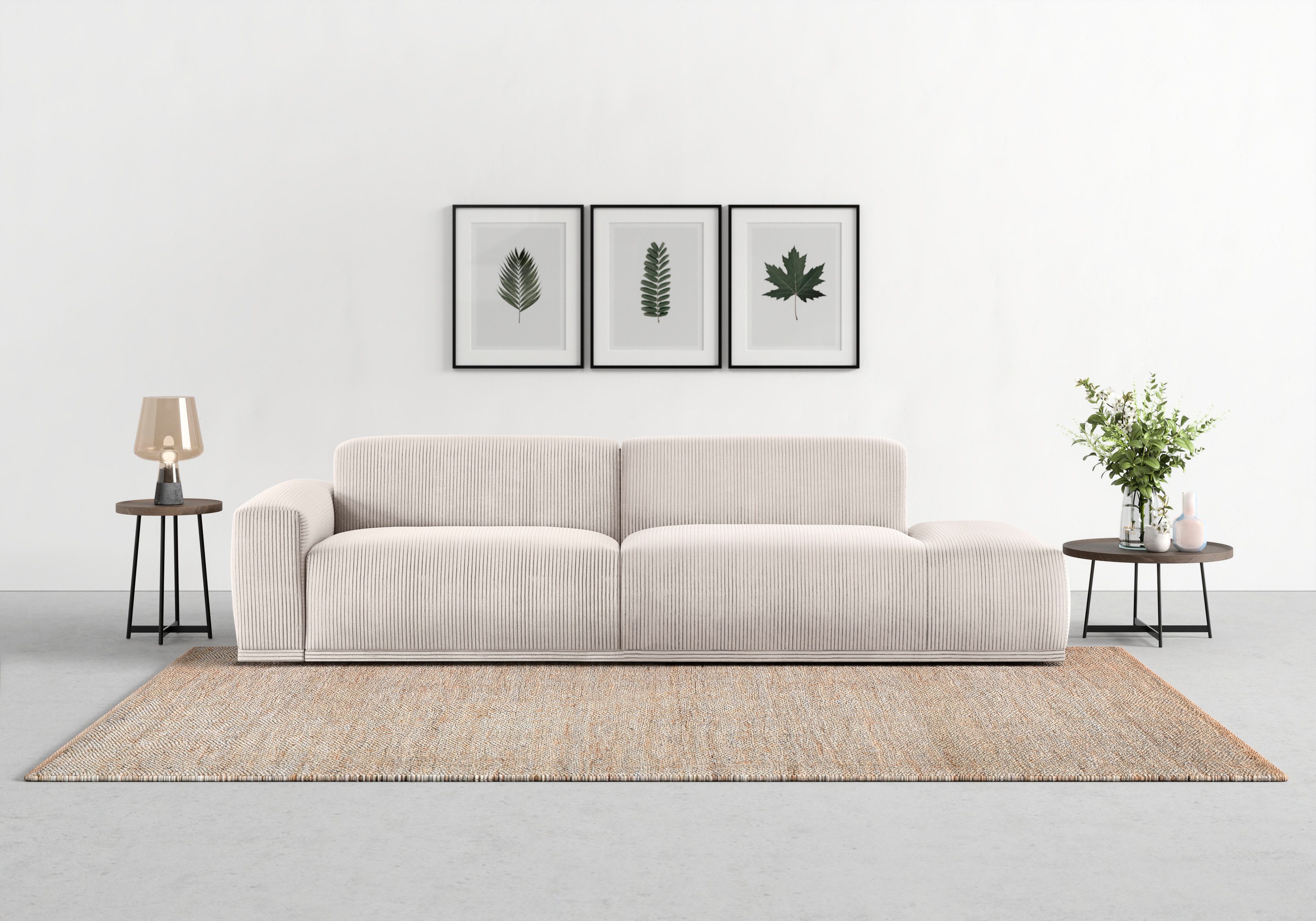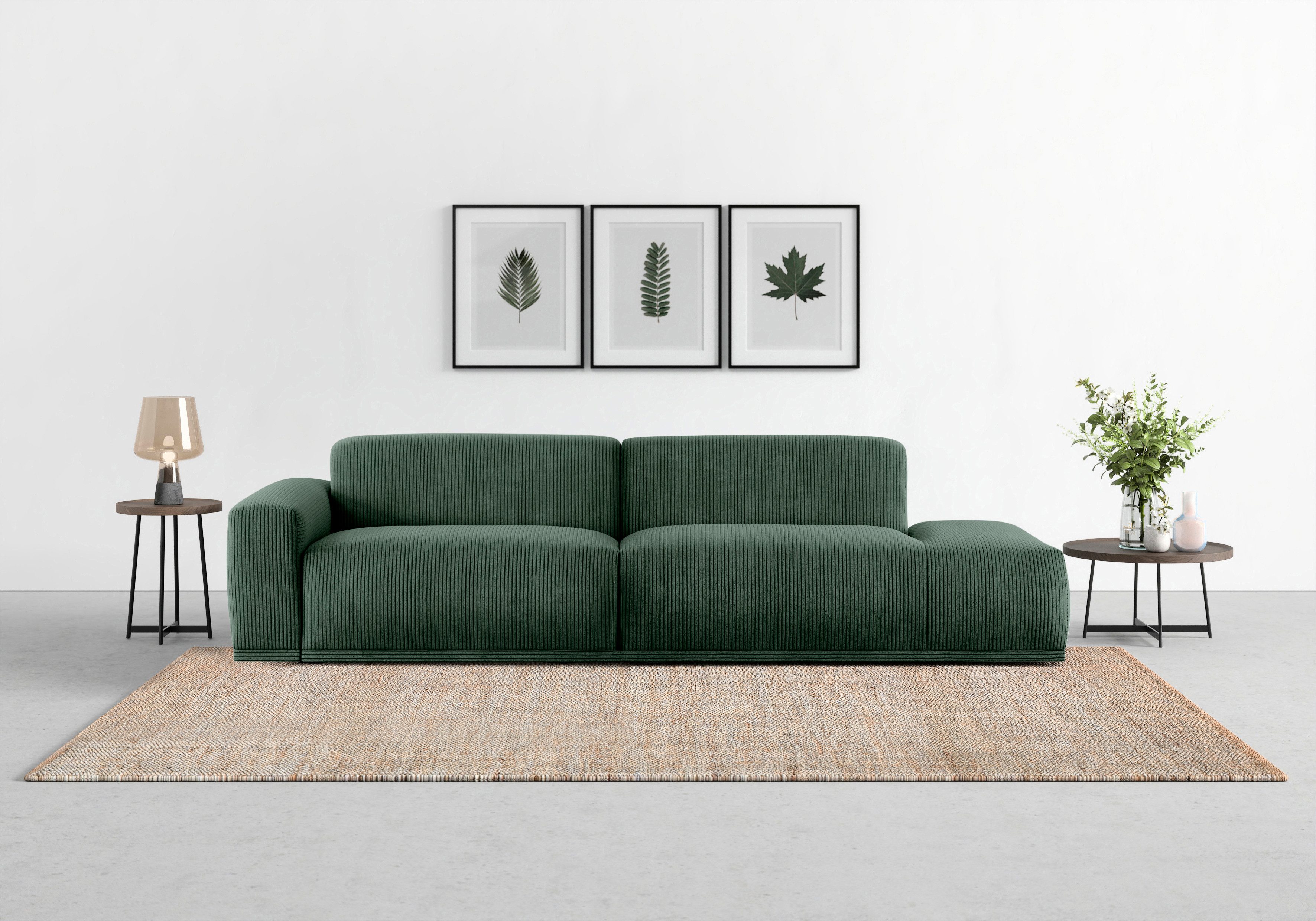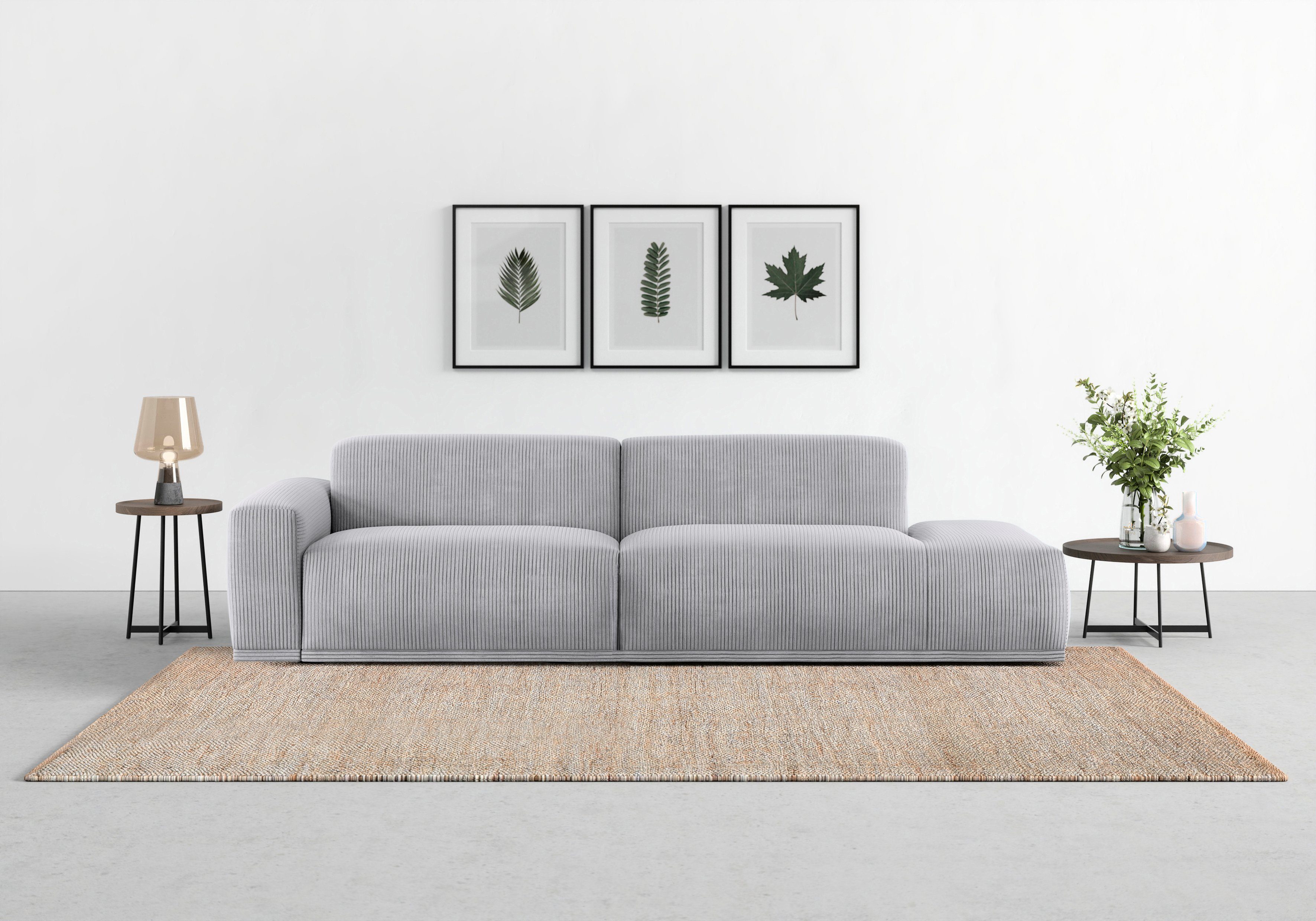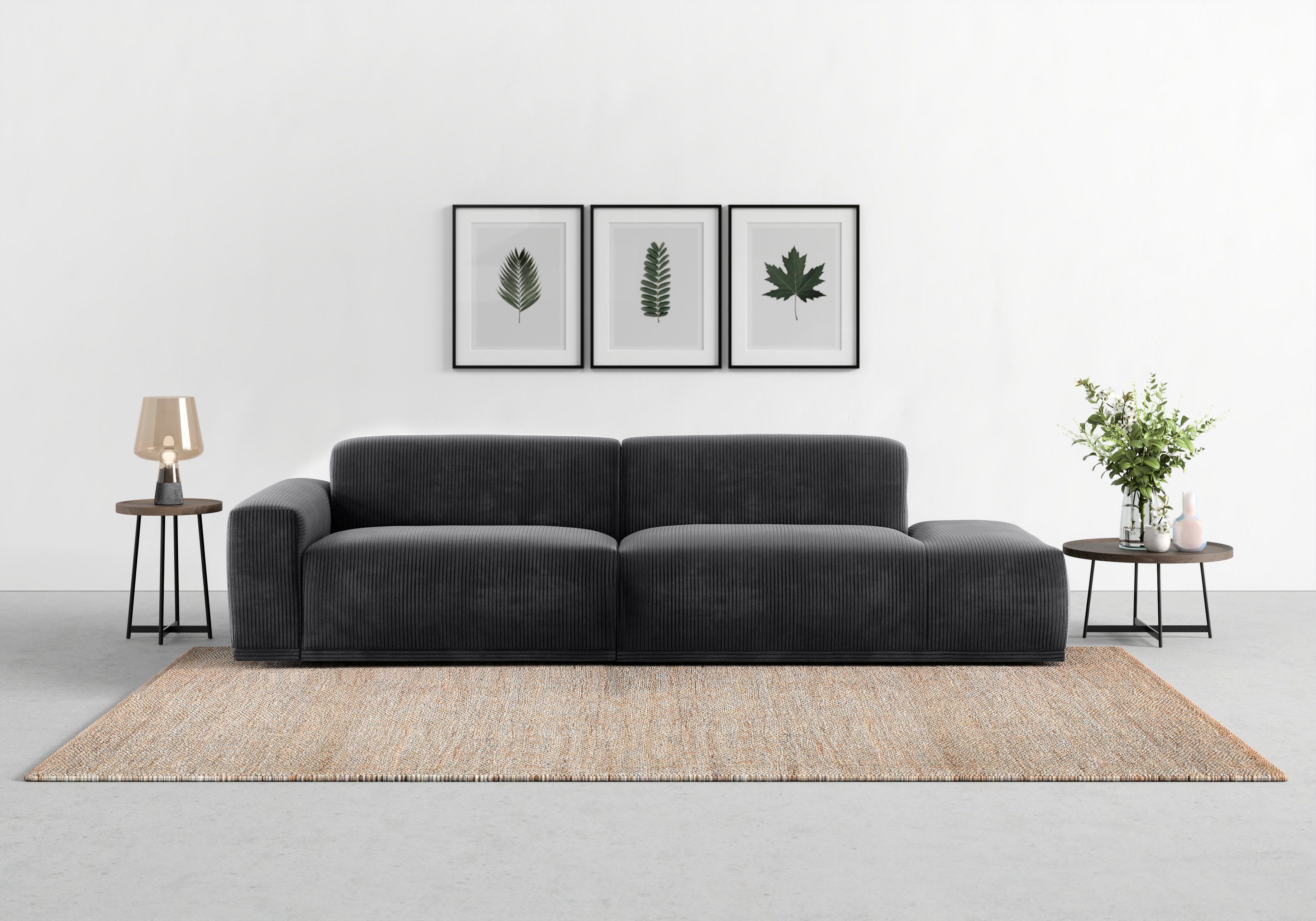 Durch die hochwertige Wellenunterfederung wird die Sitzfläche des Big-Sofas »Braga, mit hochwertigem Kaltschaum, Megasofa, in Cord erhältlich« von TRENDMANUFAKTUR gut gefedert und bleibt dauerhaft elastisch. Von vorne betrachtet ist die Recamiere nach rechts ausgerichtet. Die maximale Belastbarkeit pro Sitzplatz liegt bei einem Gewicht von 120 Kilogramm. Die schwarzen Füße aus Kunststoff punkten mit der Temperaturbeständigkeit und sind zudem formstabil. Dieses Modell wurde von Hand gefertigt.