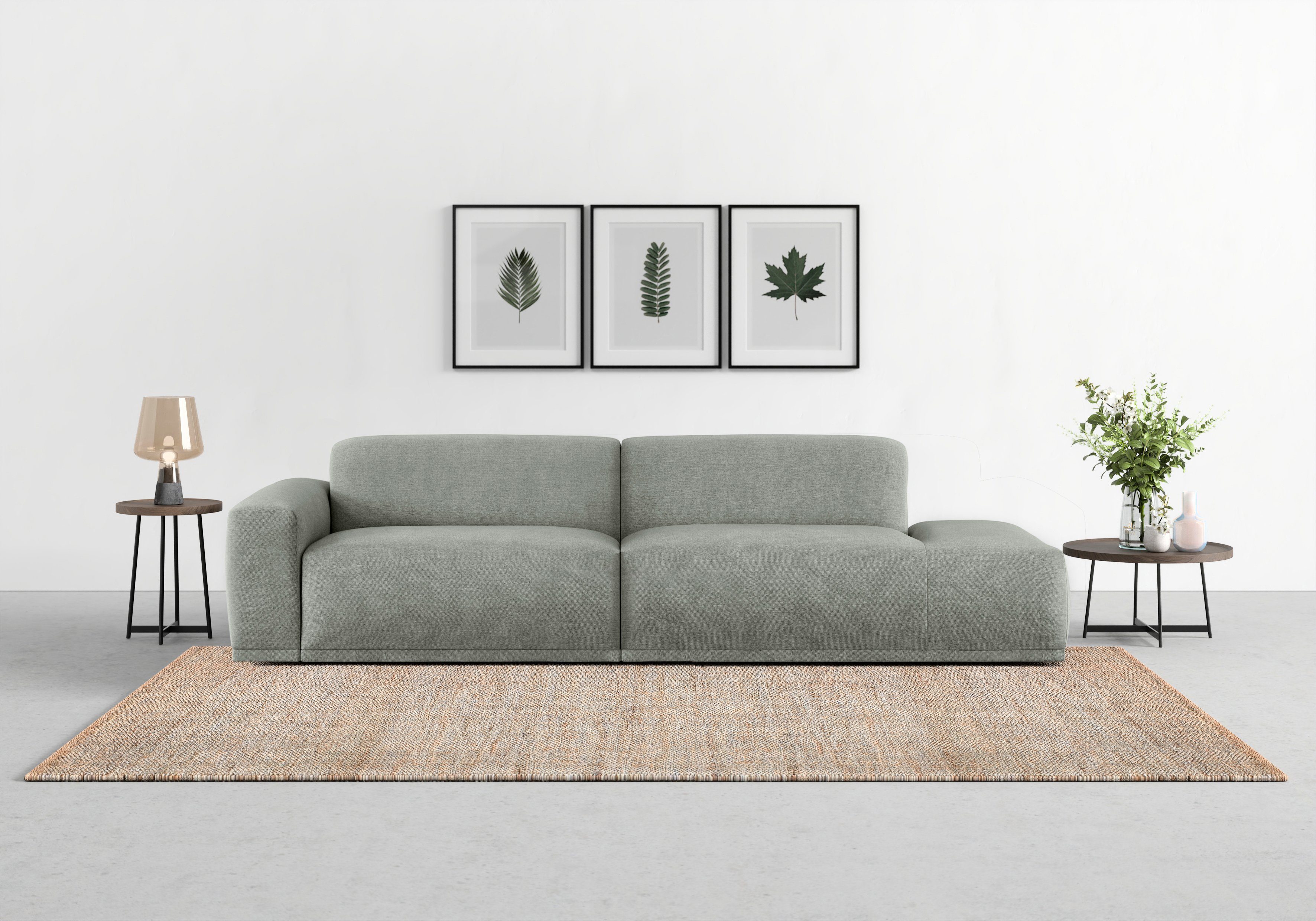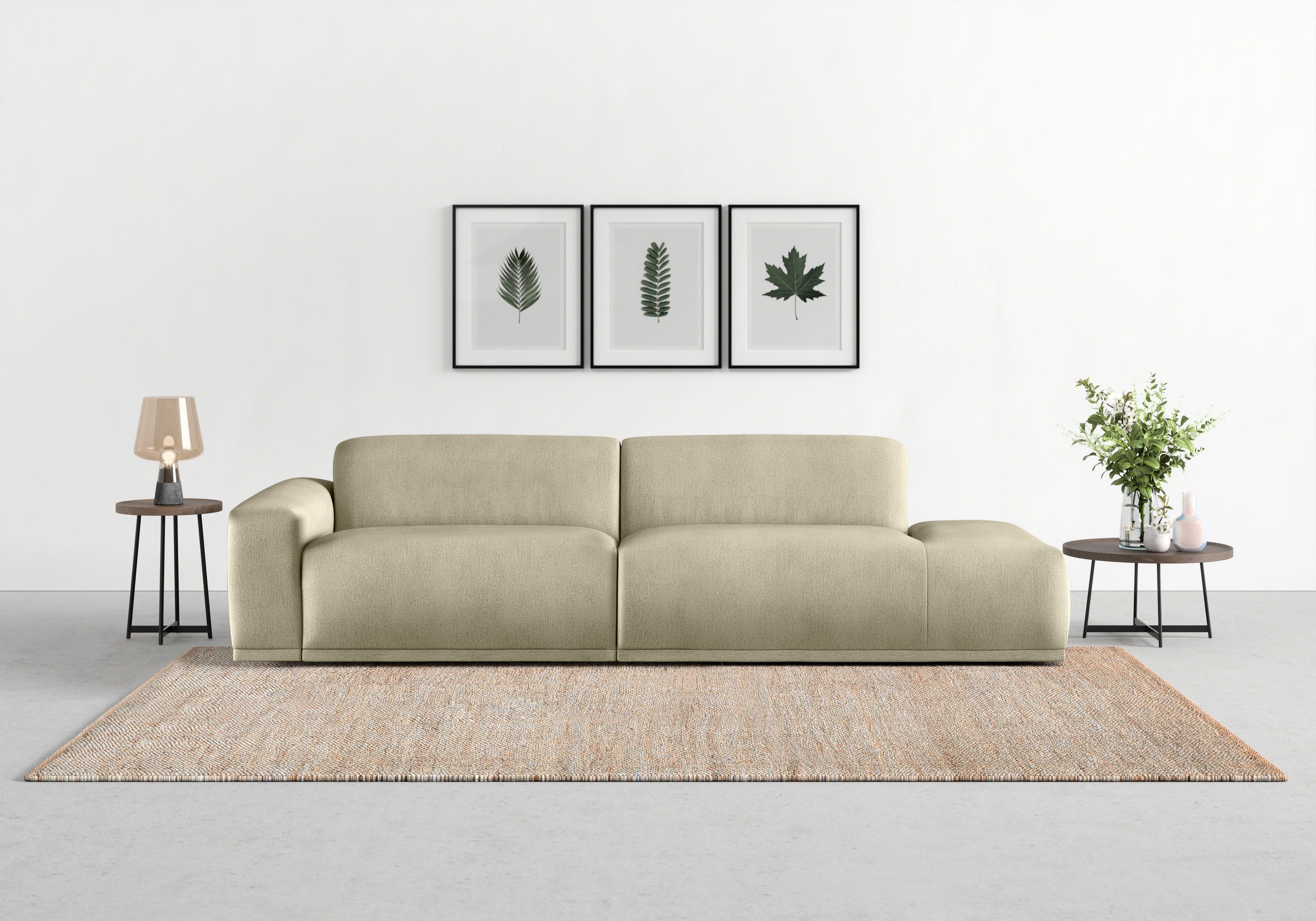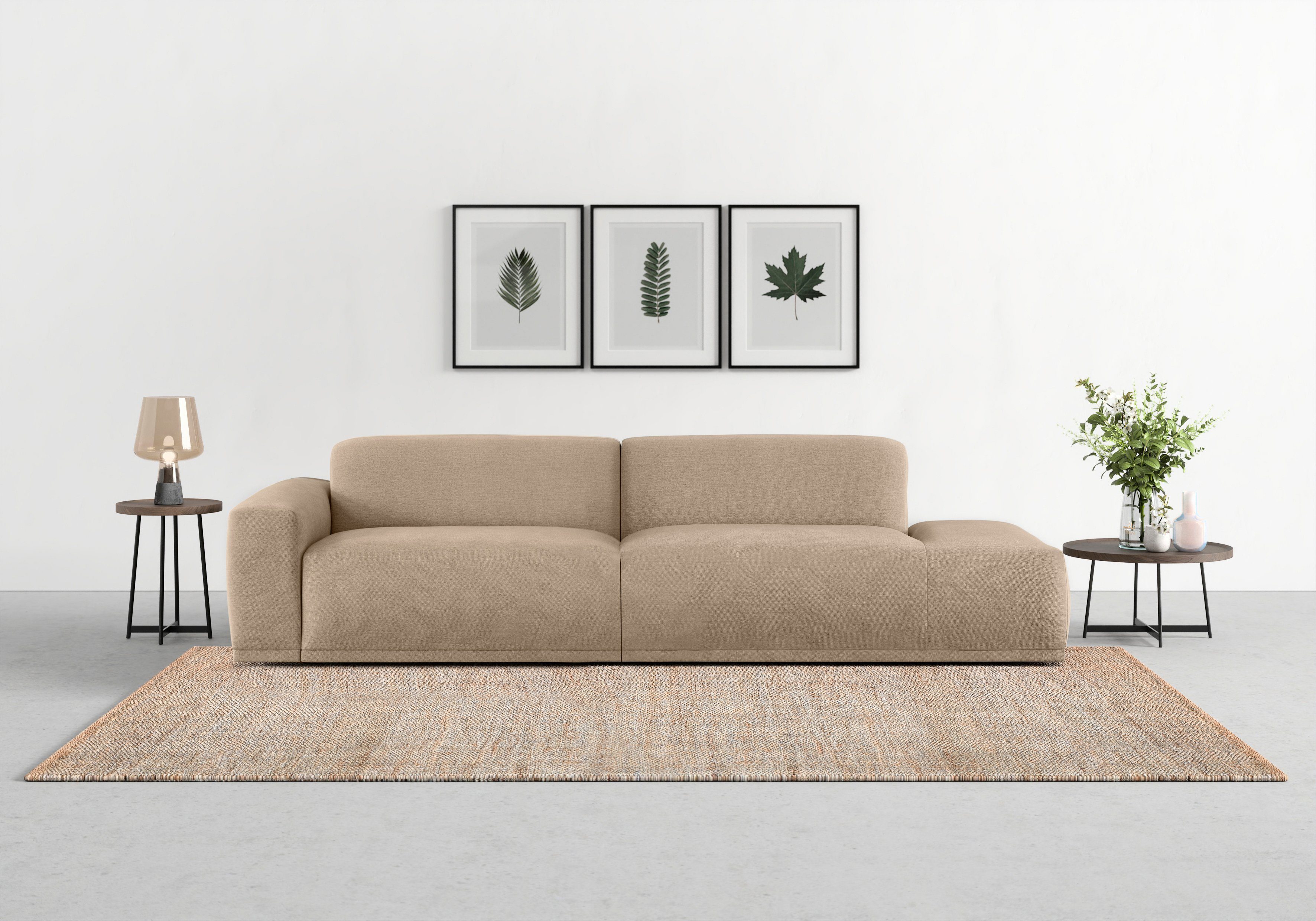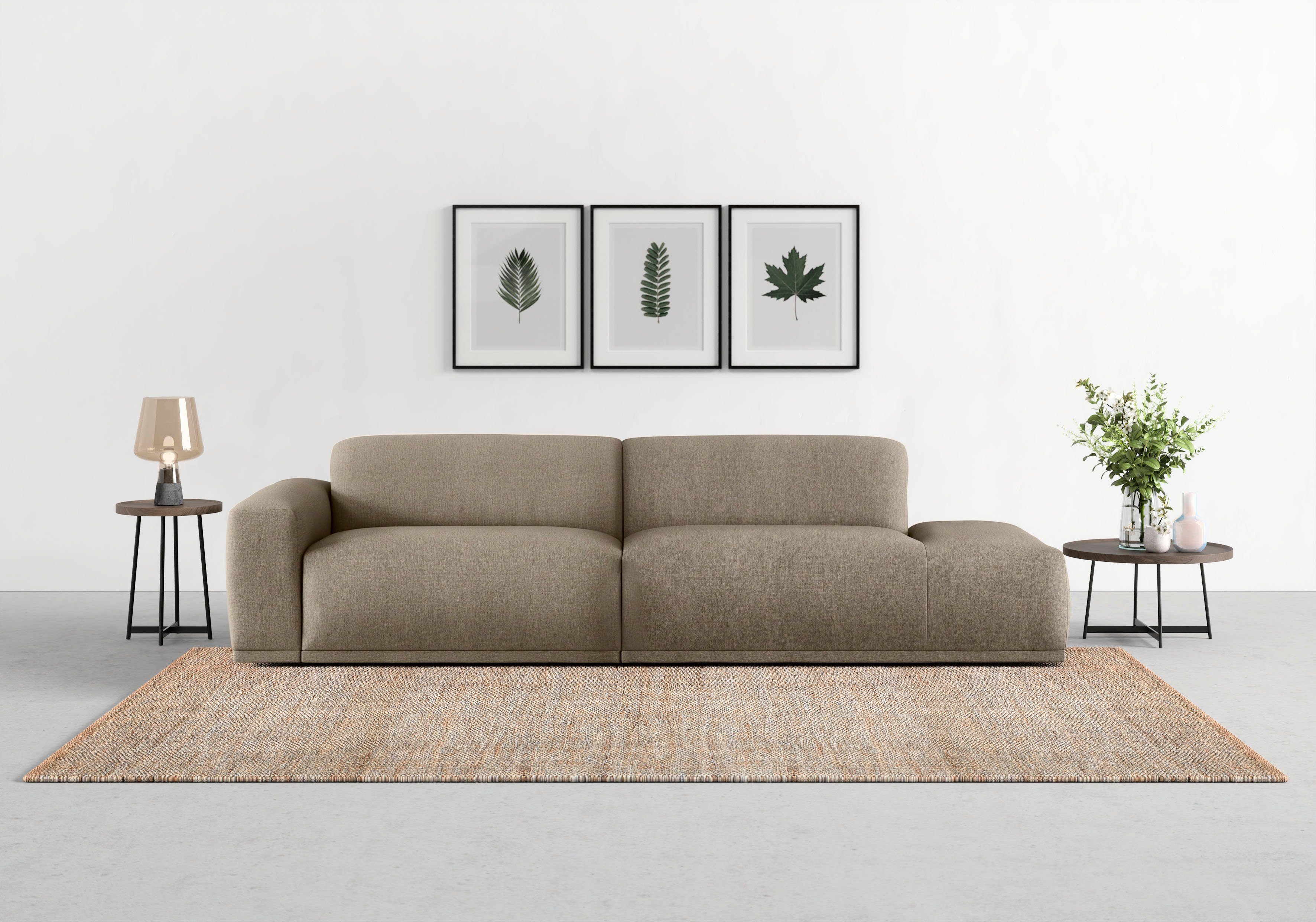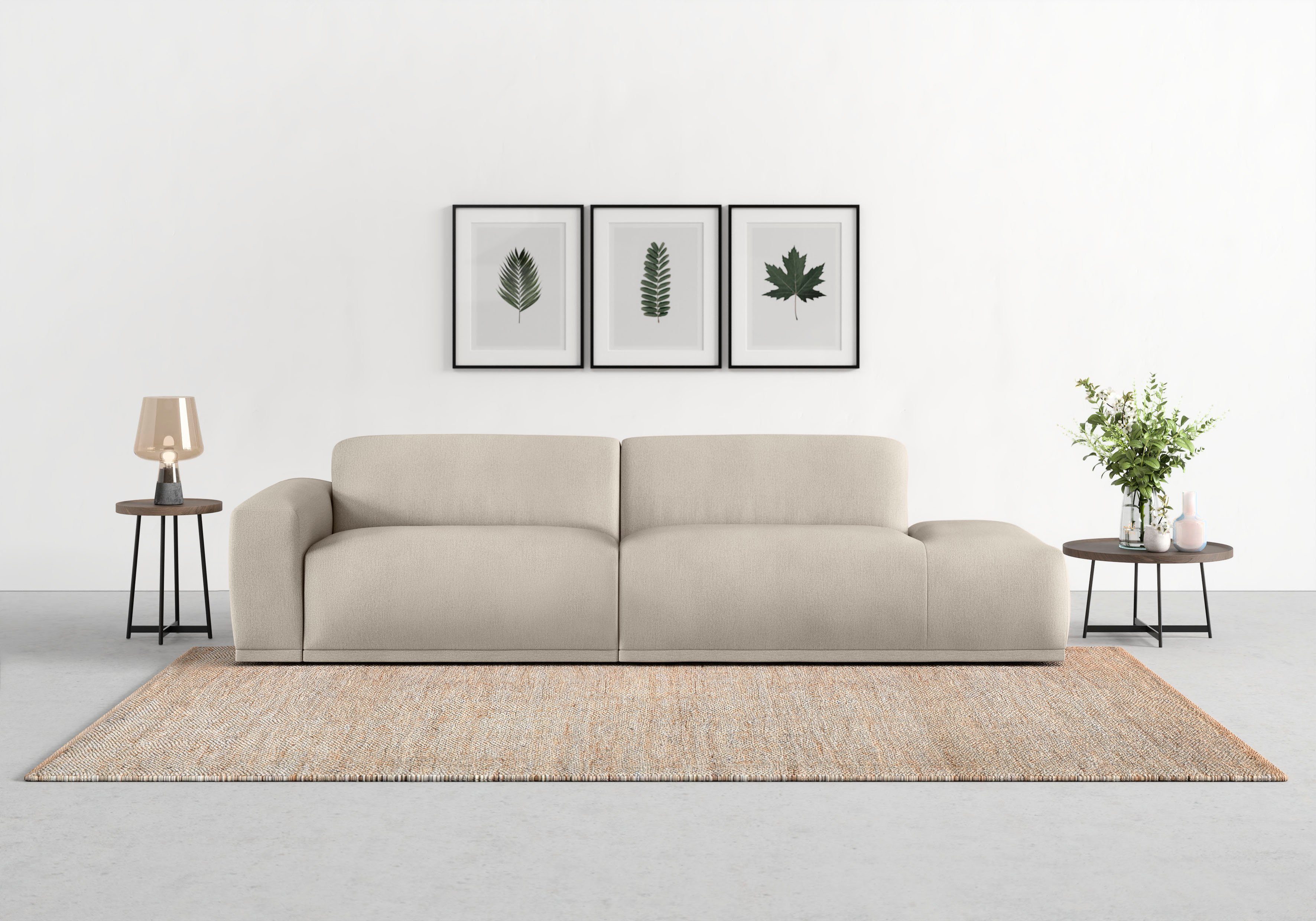 Durch die hochwertige Wellenunterfederung wird die Sitzfläche des Big-Sofas »Braga, mit hochwertigem Kaltschaum, Megasofa, in Cord erhältlich« von TRENDMANUFAKTUR gut gefedert und bleibt dauerhaft elastisch. Von vorne betrachtet ist die Recamiere nach rechts ausgerichtet. Die maximale Belastbarkeit pro Sitzplatz liegt bei einem Gewicht von 120 Kilogramm. Die schwarzen Füße aus Kunststoff punkten mit der Temperaturbeständigkeit und sind zudem formstabil. Dieses Modell wurde von Hand gefertigt.