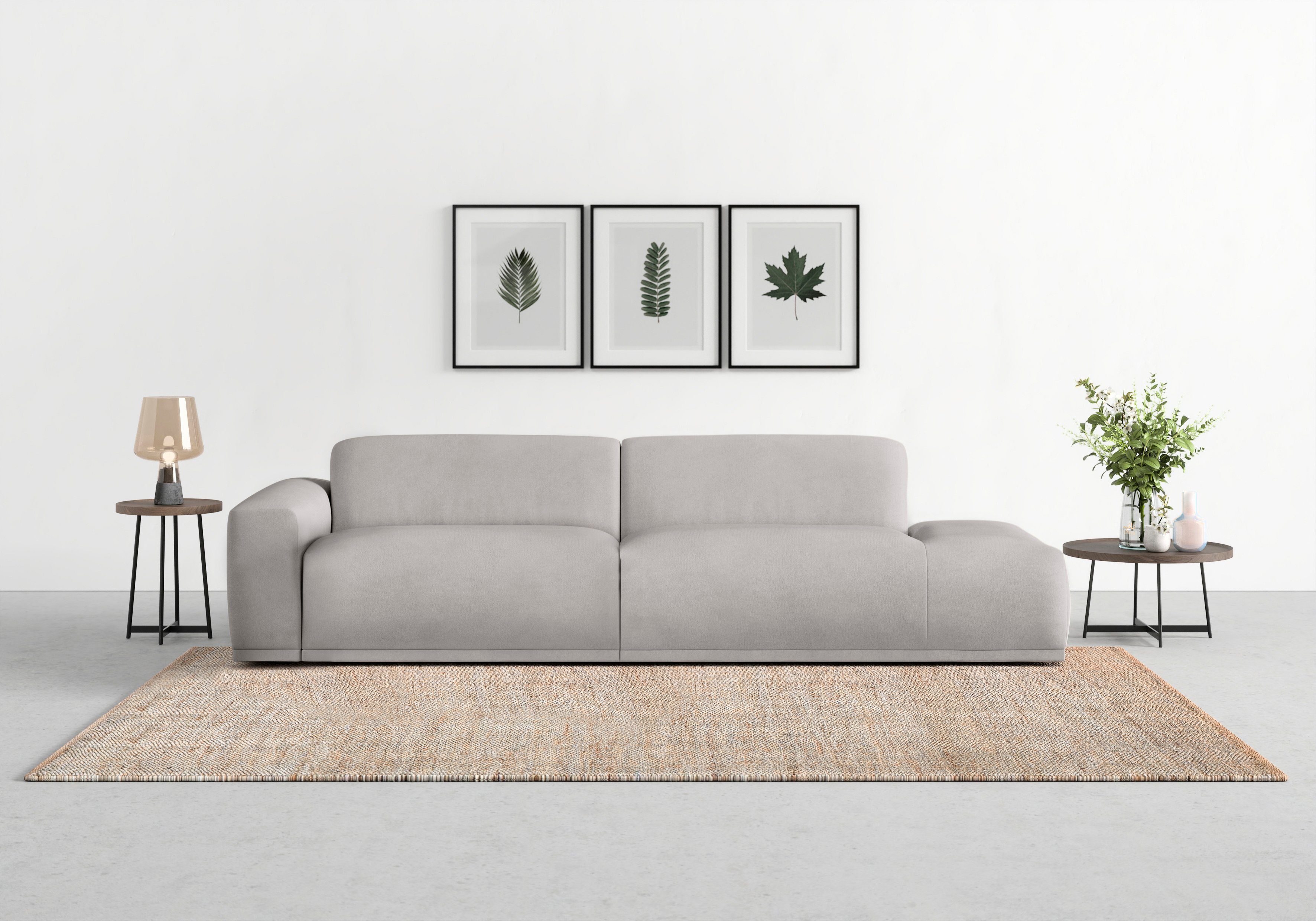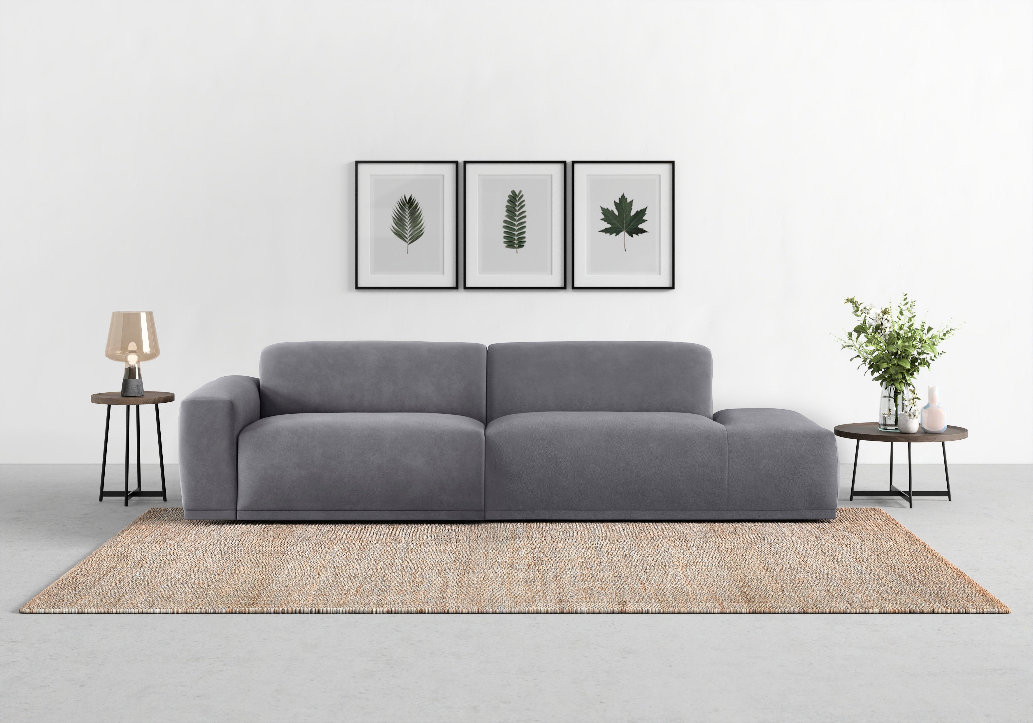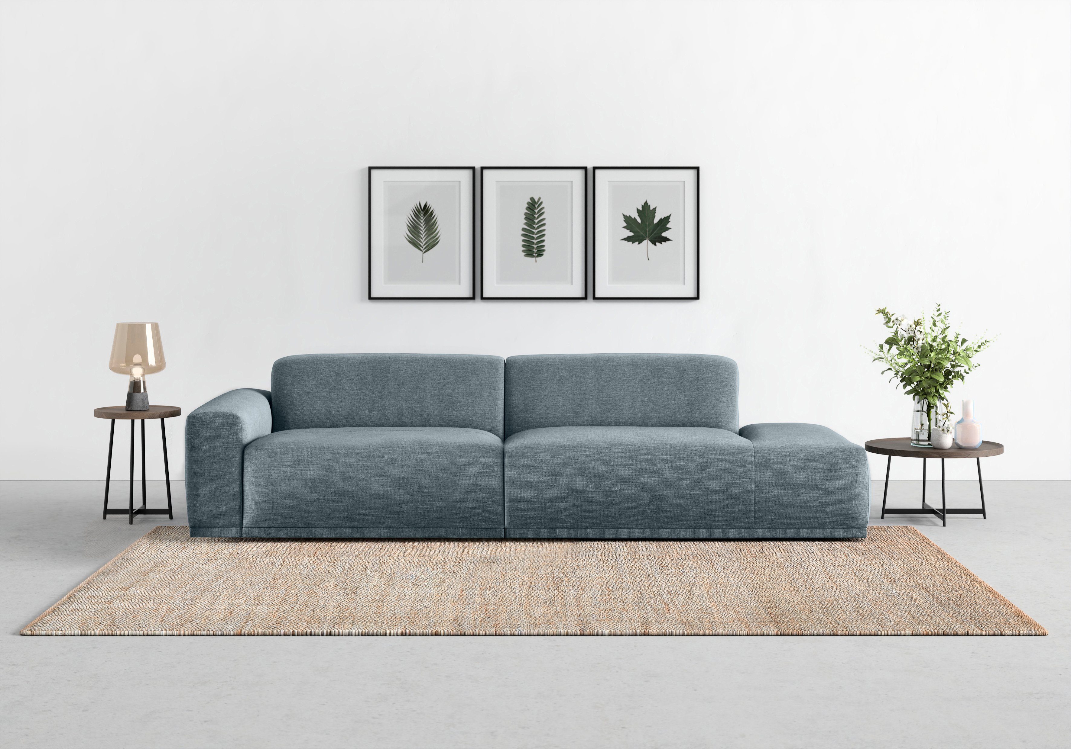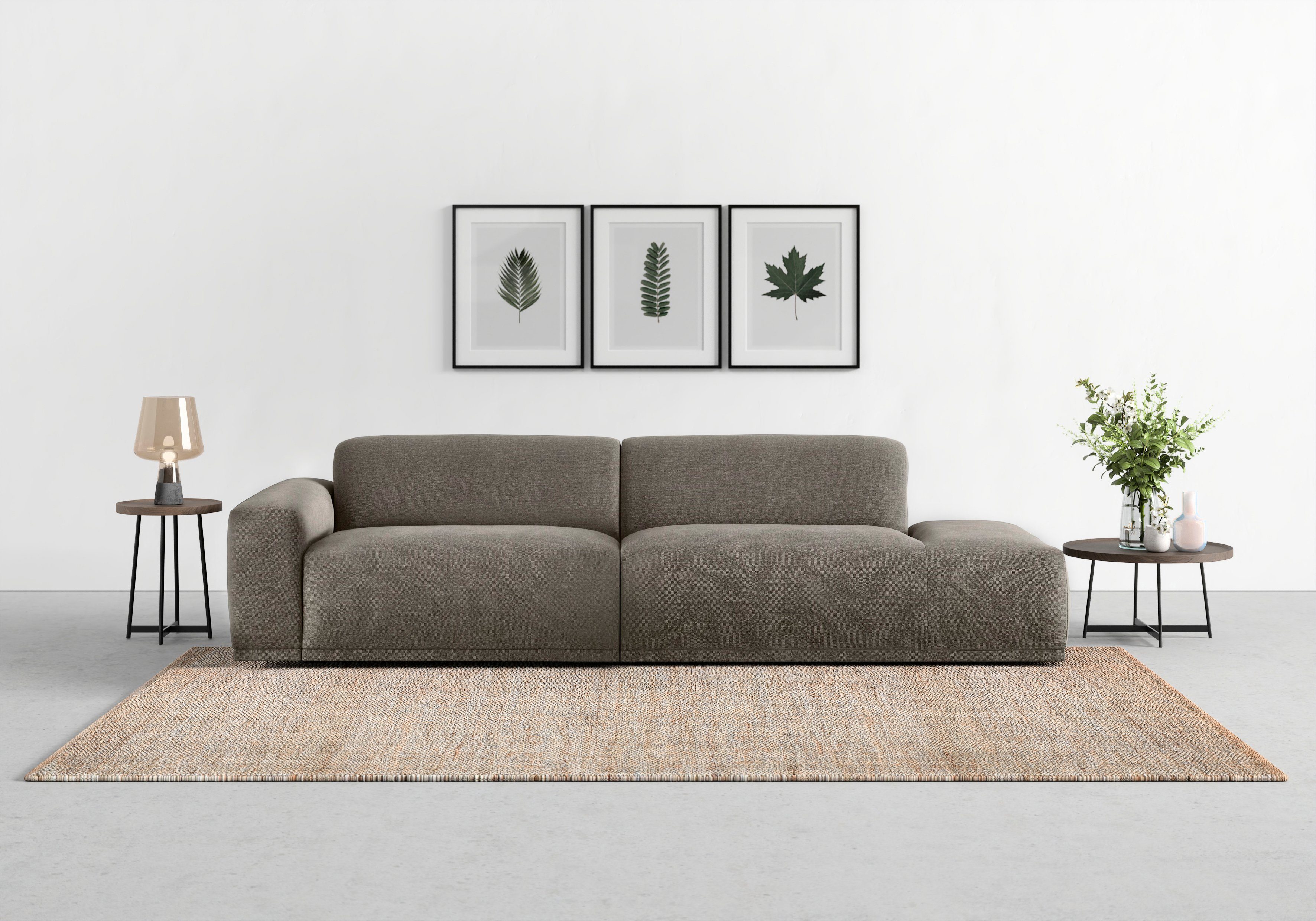 Durch die hochwertige Wellenunterfederung wird die Sitzfläche des Big-Sofas »Braga, mit hochwertigem Kaltschaum, Megasofa, in Cord erhältlich« von TRENDMANUFAKTUR gut gefedert und bleibt dauerhaft elastisch. Von vorne betrachtet ist die Recamiere nach rechts ausgerichtet. Die maximale Belastbarkeit pro Sitzplatz liegt bei einem Gewicht von 120 Kilogramm. Die schwarzen Füße aus Kunststoff punkten mit der Temperaturbeständigkeit und sind zudem formstabil. Dieses Modell wurde von Hand gefertigt.