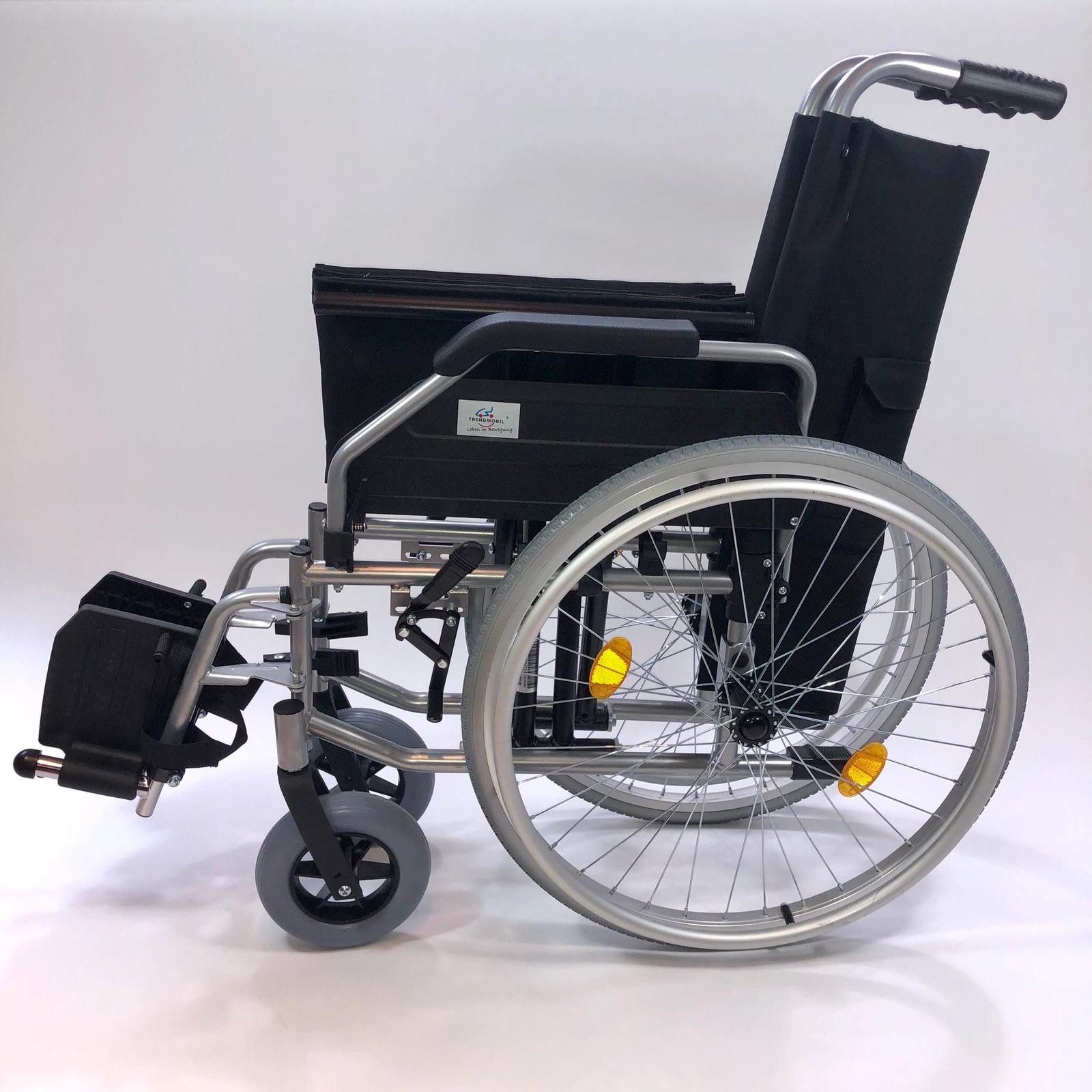Trendmobil TMB mit Trommelbremse für die Begleitperson an den Schiebegriffen. Die Rollstühle besitzen links und rechts je eine Feststellbremse an den großen Antriebsrädern, zusätzlich gibt es an beiden Schiebegriffen eine Bremse für die Begeleitperson. Dank seiner sehr guten Stabilität, der Faltbarkeit und seiner ansprechenden Optik setzt er einen neuen Maßstab! Serienmäßig mit Steckachsensystem (ohne Werkzeug abnehmbare, große Hinterräder) und Waden-Fersengurt. Stabiler Rahmen aus Stahl und einfacher Faltmechanismus mit doppelter, stabiler Kreuzstrebe. Sichere und leicht einstellbare Feststellbremse Einfach faltbar für Transport und Aufbewahrung Sitzhöhe 2-stufig einstellbar Abschwenkbare- und abnehmbare Fußstützen Hochschwenkbare Seitenteile Bleibt im gefalteten Zustand stehen PU-Bereifung (pannensicher durch Polyurethan-Gummi) Technische Daten: Длина 80 cm (ohne Fußstützen), Breite = Sitzbreite + 18 cm, Höhe 95 cm, Sitzhöhe 47 oder 50 cm, Sitztiefe 42 cm, Sitzbreite 42/45/48 oder 51 cm nach Wahl, Gewicht 13,6 - 18,2 kg je nach Sitzbreite in der Grundausstattung, ohne Fußstützen) Belastbarkeit 135 kg, Farbe silber
