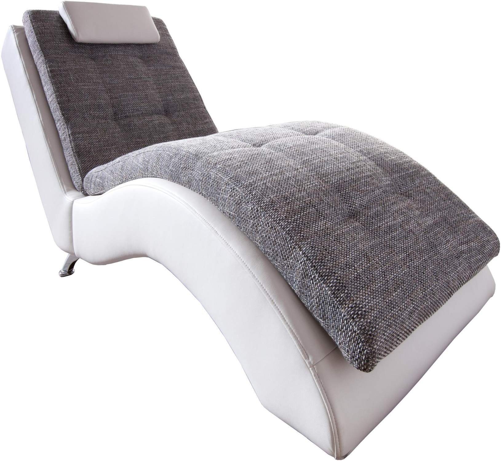 Erlebe ein Gefühl von Luxus, sobald du die Liege Varese berührst. Der Korpus aus glattem, weißem Kunstleder bildet einen spannenden Kontrast zur strukturierten, weichen Liegefläche aus grau-meliertem Webstoff. Всеs ist präzise und hochwertig verarbeitet, was durch die eleganten, verchromten Metallfüße perfekt abgerundet wird. Dieses Möbelstück ist nicht nur ein optisches Highlight, sondern auch ein Versprechen für beständige Qualität.