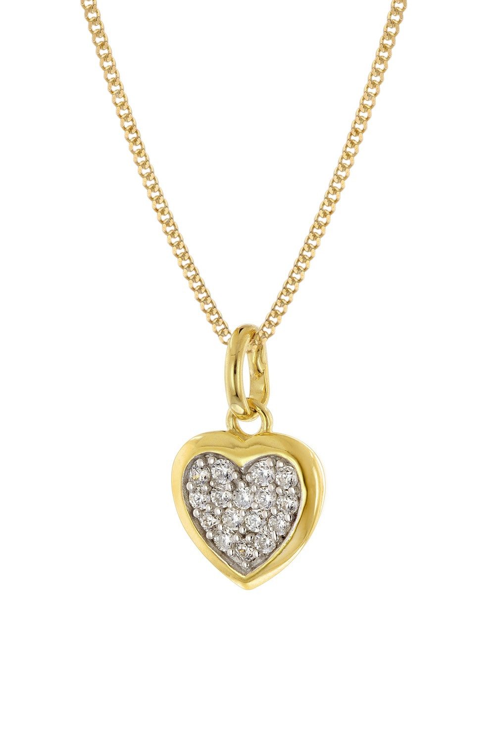 graziler Herz-Anhänger aus 8 Karat Gold 333, besetzt mit klaren glitzernden synth. Zirkonias, Размер ( mit Schlaufe) 14 x 9 mm, feine stabile Flachpanzerkette aus vergoldetem Sterlingsilber 925, Breite 1,1 mm, praktischer Federring-Verschluss, Lieferung inklusive Mikrofaser-Pflegetuch, WEEE-Reg.-Nr.: DE 35331620