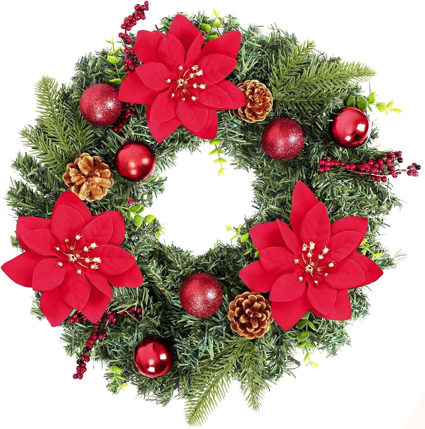SCHÖNE DEKORATION FÜR DEN INNEN- ODER AUSSENBEREICH: Verleihen Sie Ihren Feiertagen Charme mit dieser auffälligen Kranzdekoration. Kann überall im Haus verwendet werden, an der Haustür, an Fenstern oder im überdachten Außenbereich.