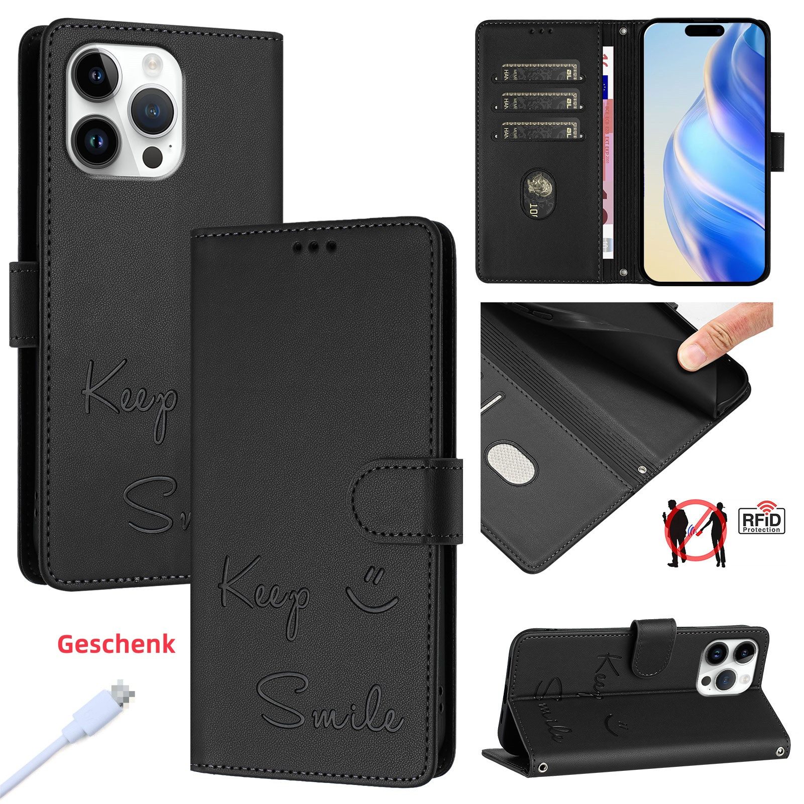 trends for living Handyhülle Leder Lächeln Hülle Tasche für iPhone X XS 12 13 14 15 16 Pro Max Plus
