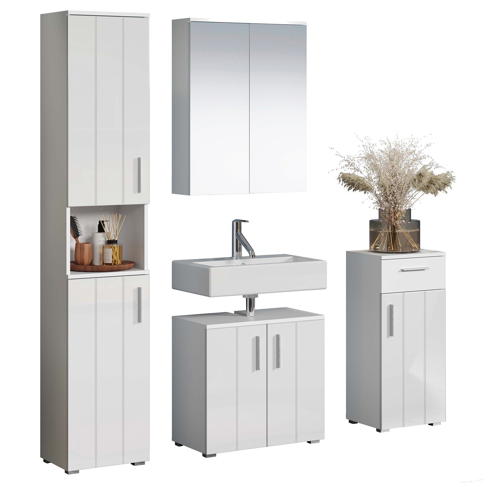 Das Bad Wons besticht durch seine weiß lackierten Hochglanz-Fronten mit vertikalen Einfräsungen und wirkt somit modern und zeitlos. Durch das unaufgeregte Design lassen sich alle Möbel gut mit bestehender Einrichtung kombinieren, wirken allerdings auch einzeln für sich. Bye Bye Unordnung - Die Badmöbel der Serie Wons bieten ausreichend Platz für Stylingprodukte, Hygieneartikel oder Badutensilien aller Art.