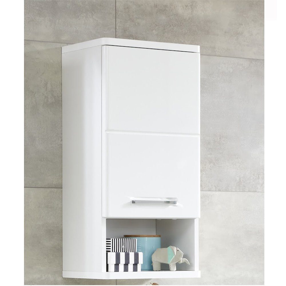 Der Hängeschrank Badmöbelserie Monte in Hochglanz Weiß ist ein stilvoller Hingucker in jedem Bad. Die wechselbaren Türanschläge ermöglichen das Anpassen auf individuelle Bedürfnisse und räumliche Begebenheiten.