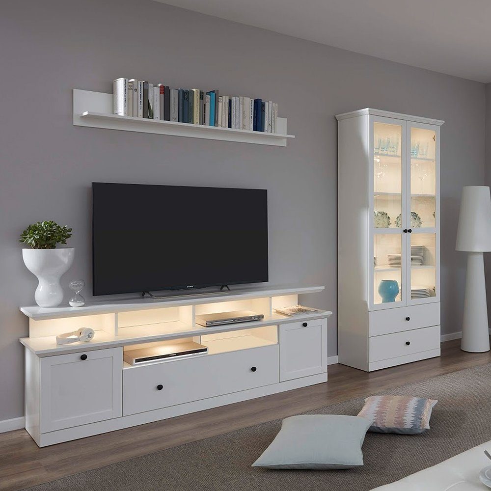Setzen Sie mit der tollen Wohnkombination Brandson Baxter einen schönen Akzent in Ihrem Wohnbereich. Durch ein weißes Dekor und eine klare Linienführung zeichnet sich diese Wohnkombination aus. Moderns Design, praktischer Stauraum kombiniert mit einem harmonischem Gesamtbild.