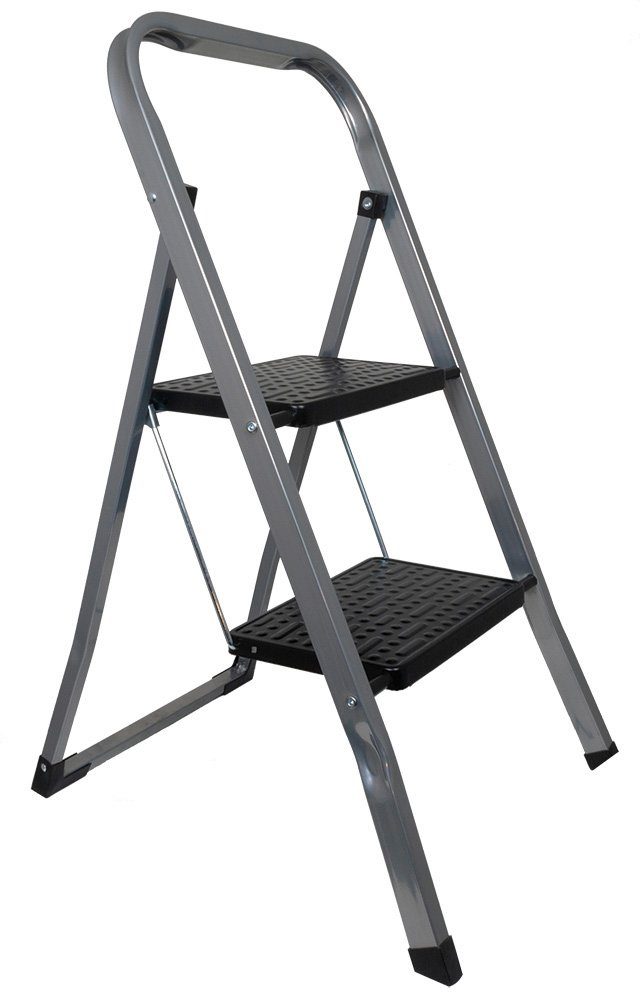 hochwertige Trittleiter mit 2 Stufen > Die hochwertige 2-stufige Trittleiter bietet sicheren Stand bei Arbeiten in Haus, Keller und Garten. > Der silberne Fußtritt lässt sich schnell auf- und wieder zuklappen. Die beiden profilierten Stahl-Stufen in schwarzer Farbe und die ebenfalls profilierten rutschsicheren Kunststofffüße sorgen für extra Standsicherheit beim Arbeiten. > Zusammengeklappt hat die Klapptrittleiter eine Tiefe von ca. 4cm und passt somit in die meisten Nischen. > Die Trittleiter lässt sich nur durch Lösen der eingebaute Sicherheitsverriegelung zusammenklappen. > Der praktische Vierkantbügel erleichtert den Transport und erlaubt einfaches Aufhängen an der Wand. > Die maximale Belastbarkeit des Fußtritts beträgt ca. 150kg. > Die Trittleiter ist ein idealer Helfer im Alltag. > Deutsche Bedienungsanleitung > Die Abmessungen betragen aufgeklappt ca. 42x55x81cm (BxTxH), zusammengeklappt ca. 42x4x89cm (BxTxH) > Das Gewicht des Fußtritts beträgt ca. 4kg