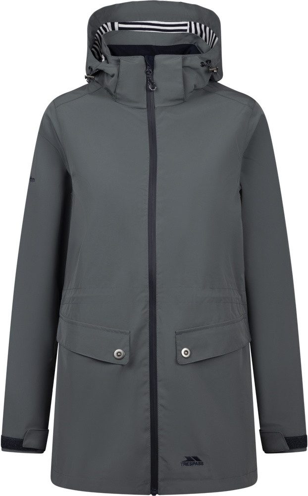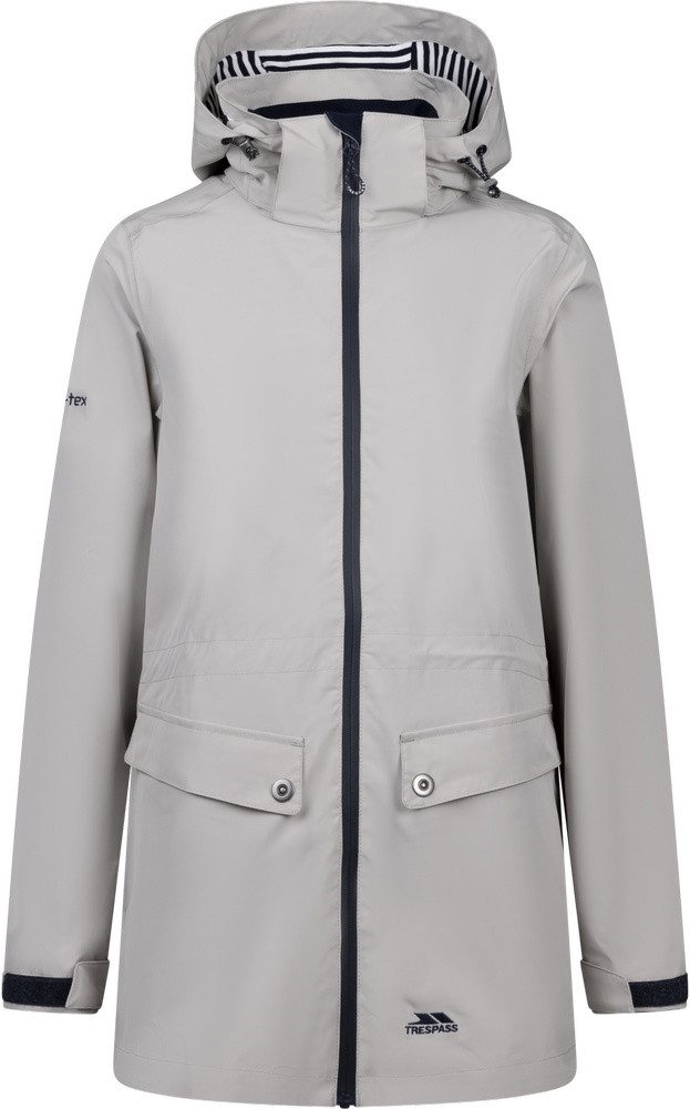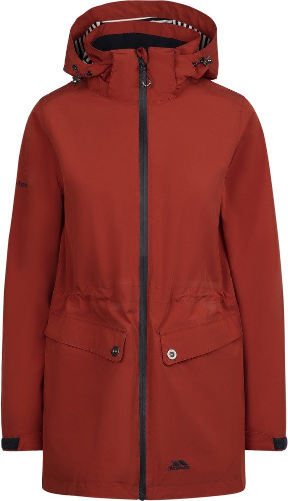 Die Trespass Damen Regenjacke Tiverton Rainwear Jacket ist der ideale Begleiter an regnerischen Tagen. Die Jacke überzeugt nicht nur durch ihr schickes Design, sondern auch durch ihre Funktionalität. Dank des wasserabweisenden Materials und der verschweißten Nähte hält sie zuverlässig Regen und Feuchtigkeit ab. Der taillierte Schnitt sorgt für eine feminine Passform und betont die Figur. Die verstellbare Kapuze und der hochgeschlossene Kragen bieten zusätzlichen Schutz vor Wind und Wetter. Mit den praktischen Reißverschlusstaschen können wichtige Kleinigkeiten sicher verstaut werden, während die elastischen Ärmelbündchen für einen bequemen Sitz sorgen. Egal ob beim Spaziergang im Regen oder beim Stadtbummel an einem verregneten Tag - mit der Trespass Damen Regenjacke Tiverton Rainwear Jacket ist man bestens ausgestattet. Stilvoll und funktional zugleich, ist diese Jacke ein Must-Have für jede modebewusste Frau, die auch bei schlechtem Wetter nicht auf Stil verzichten möchte.